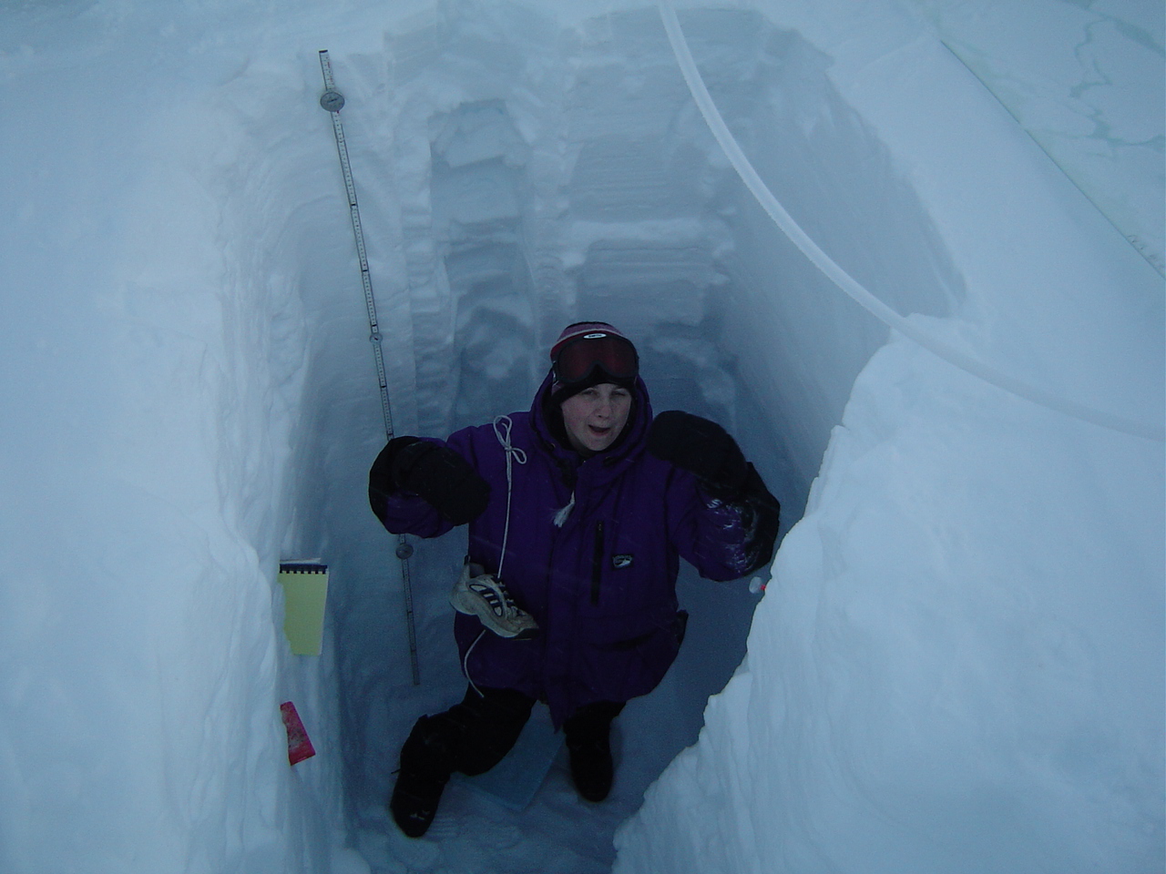 TREC teacher Nikki Airaudi inside of a snow pit at Summit, Greenland.