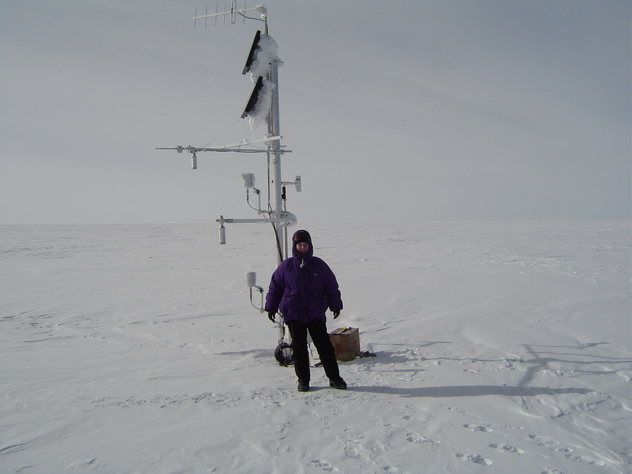 TREC teacher Nikki Airaudi by a weatherstation at Summit, Greenland.