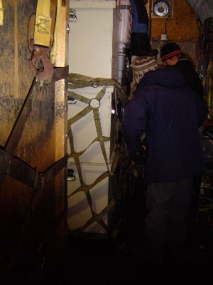 Putting on a cargo net to secure items during transport to and from Summit, Greenland.