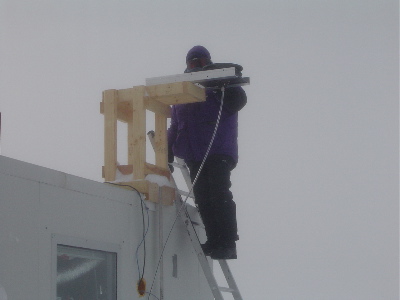TREC teacher Nikki Airaudi helps position photosensors at Summit, Greenland.