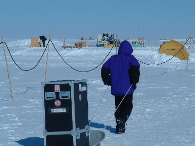 TREC teacher Nikki Airaudi moves the skicam at Summit, Greenland.