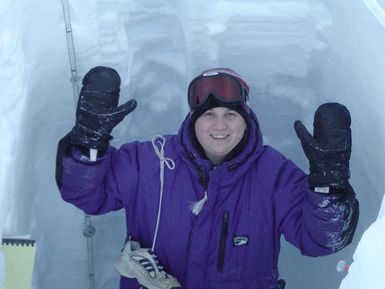 TREC teacher Nikki Airaudi inside of a snow pit at Summit, Greenland.