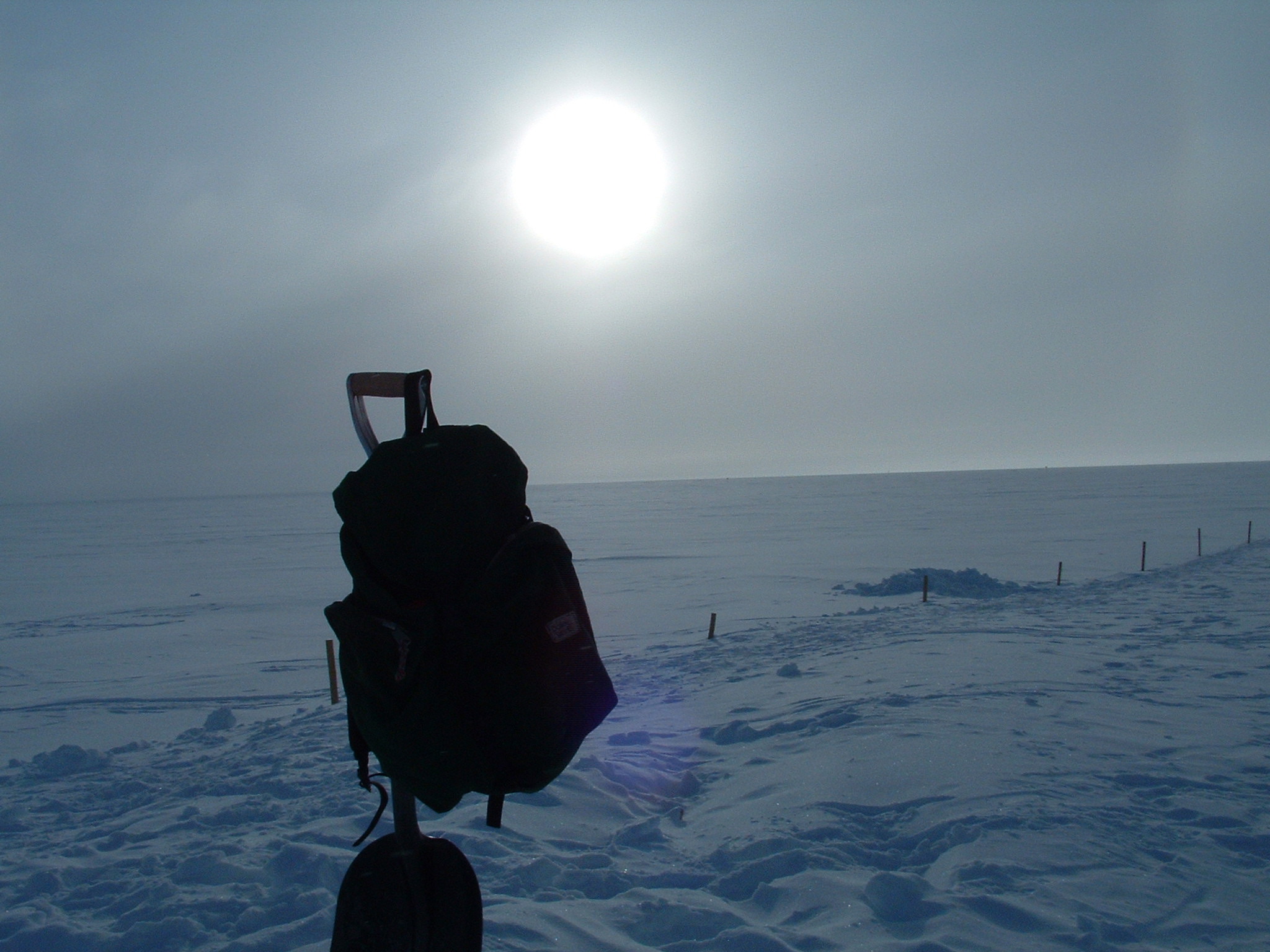 A shovel and a cold, but scenic view. Summit, Greenland.