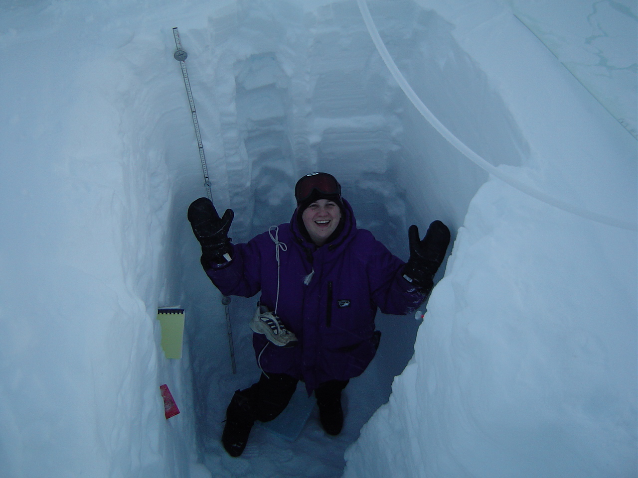 TREC teacher Nikki Airaudi inside of a snow pit at Summit, Greenland.
