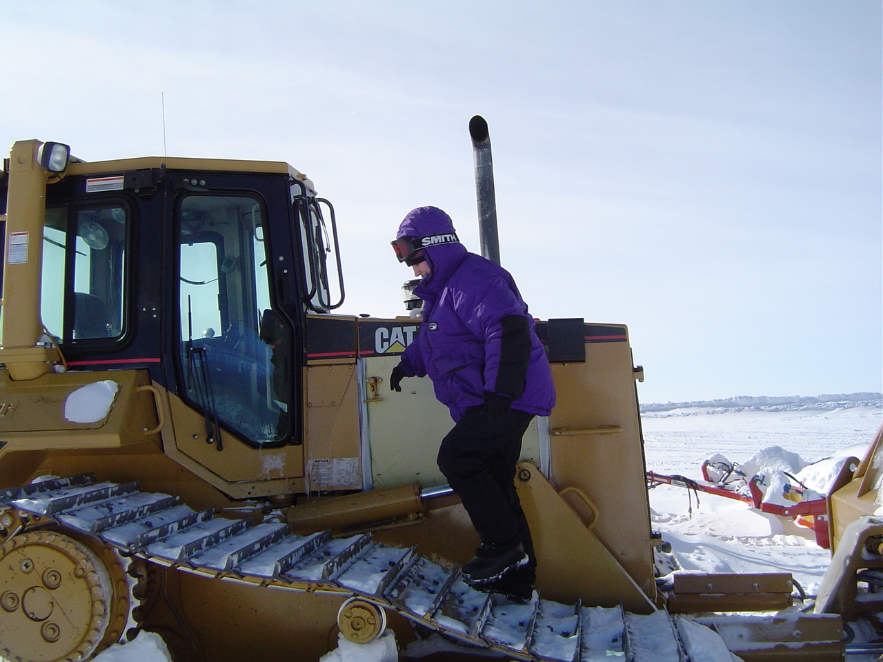 TREC teacher Nikki Airaudi drives a caterpillar at Summit, Greenland.