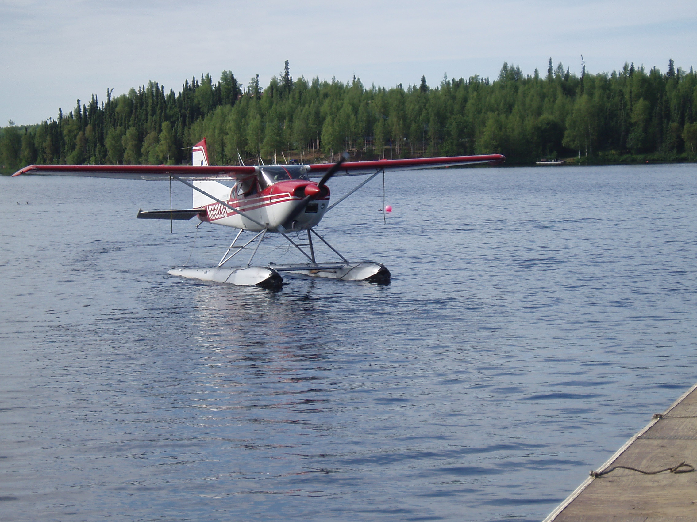 A float plane lands.