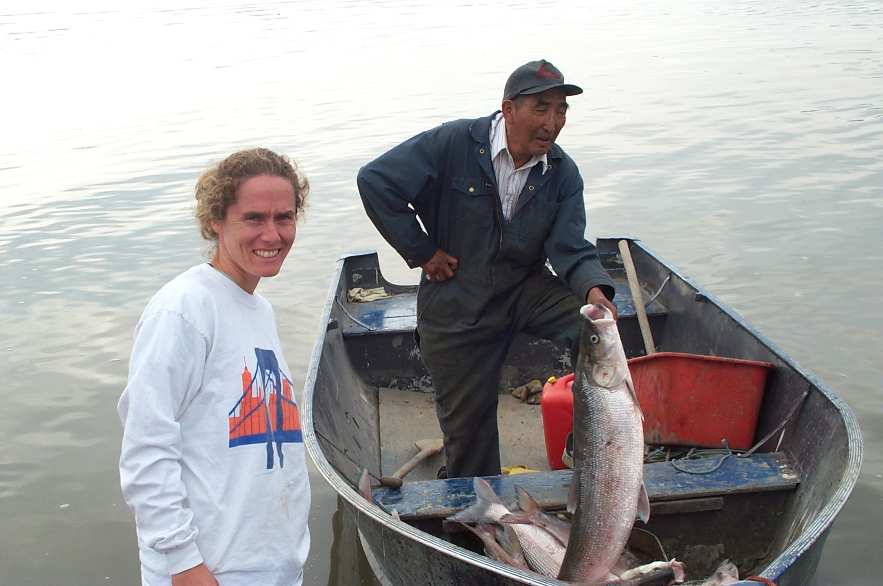 TREC teacher Amy Clapp and Tsiigehtchic native elder Noah Andre.