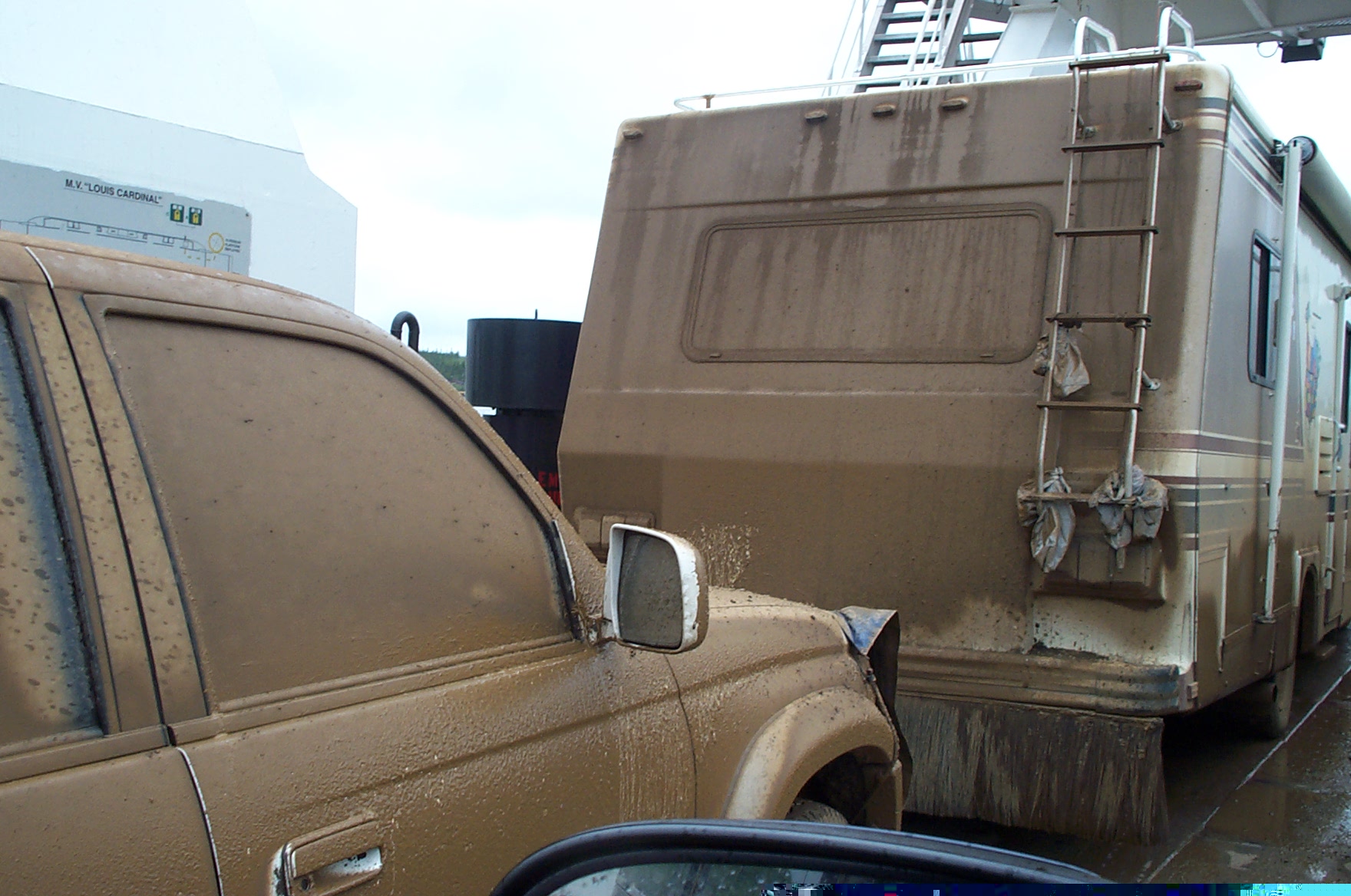 An example of how dirty vehicles get traveling the Dempster Highway when it rains.