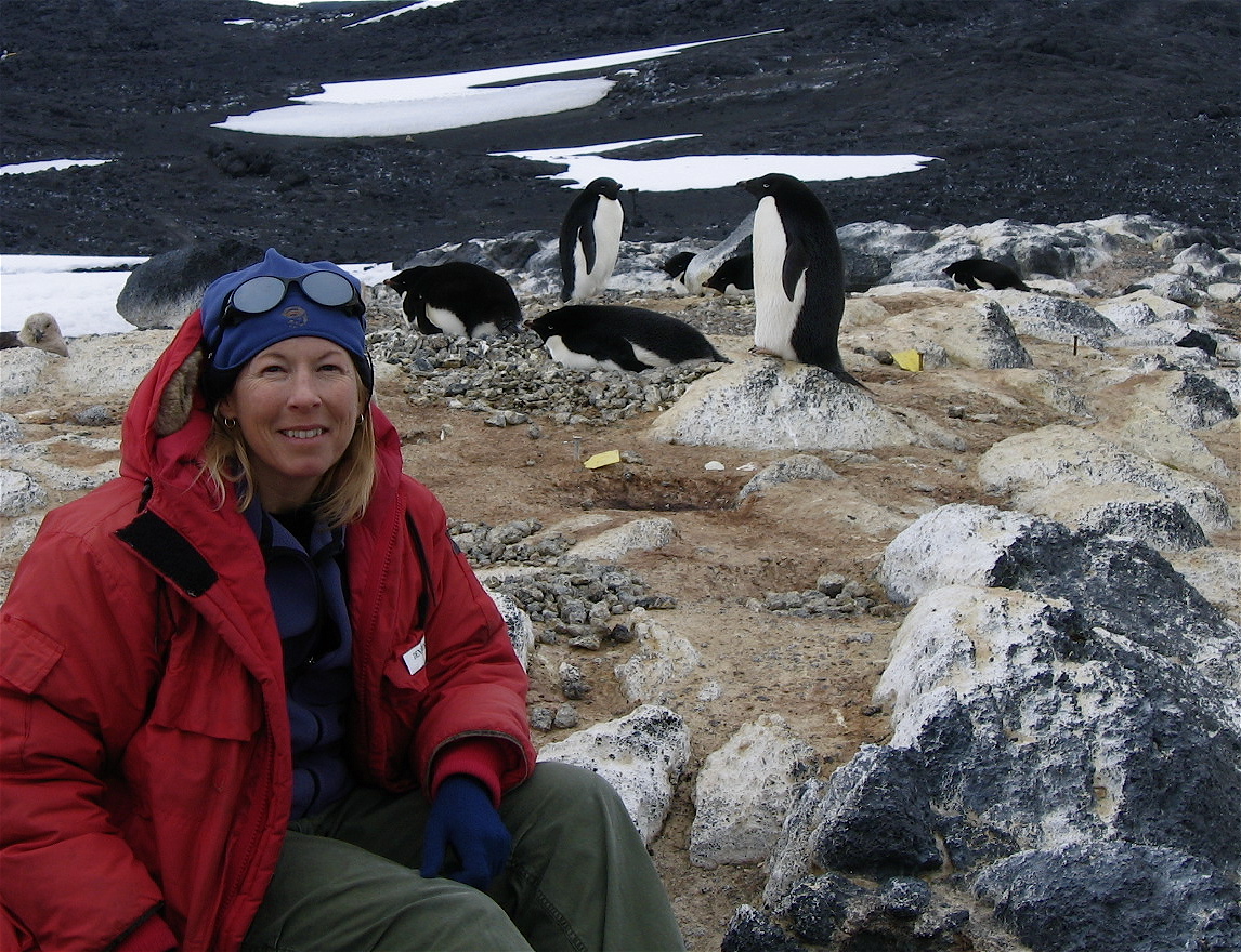 TREC teacher Dena Rosenberger at the Adelie penguin rookery at Pony Lake near McMurdo Station, Antarctica.
