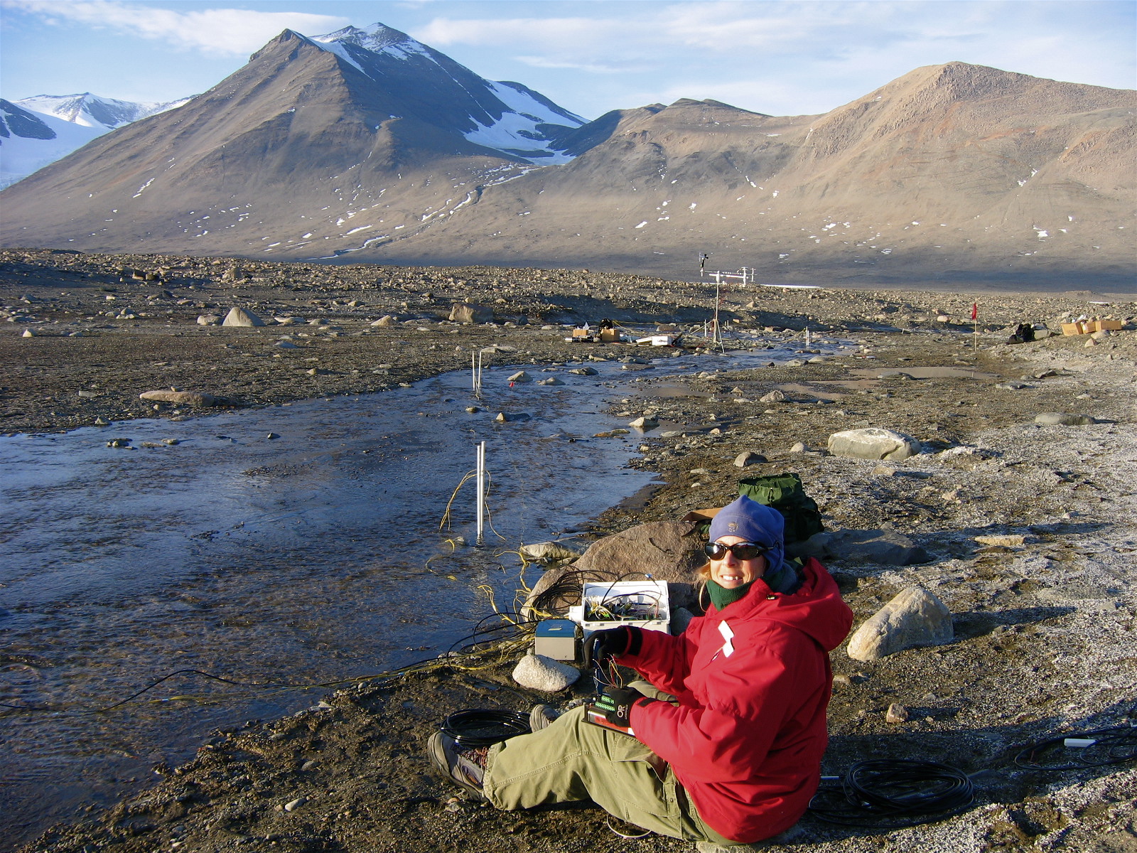 TREC teacher Dena Rosenberger stream monitoring in the Dry Valleys, Antarctica.