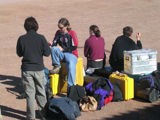 Some of the research team and their gear waiting to be picked up as seen during TREC teacher John Sode's 2005 expedition to Thule, Greenland.