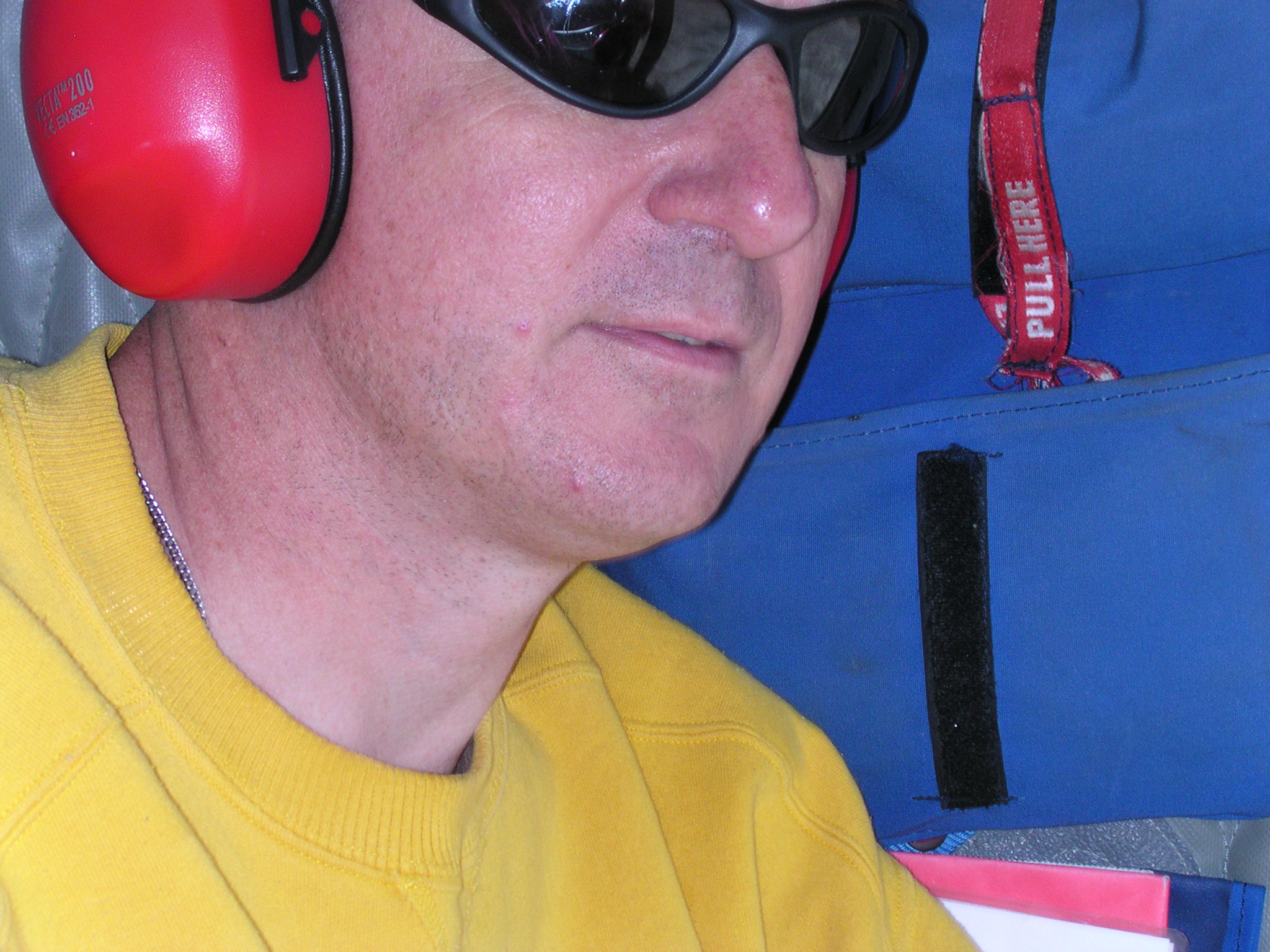 TREC teacher John Sode rides in a helicopter on his way to Greenvalley, Greenland.
