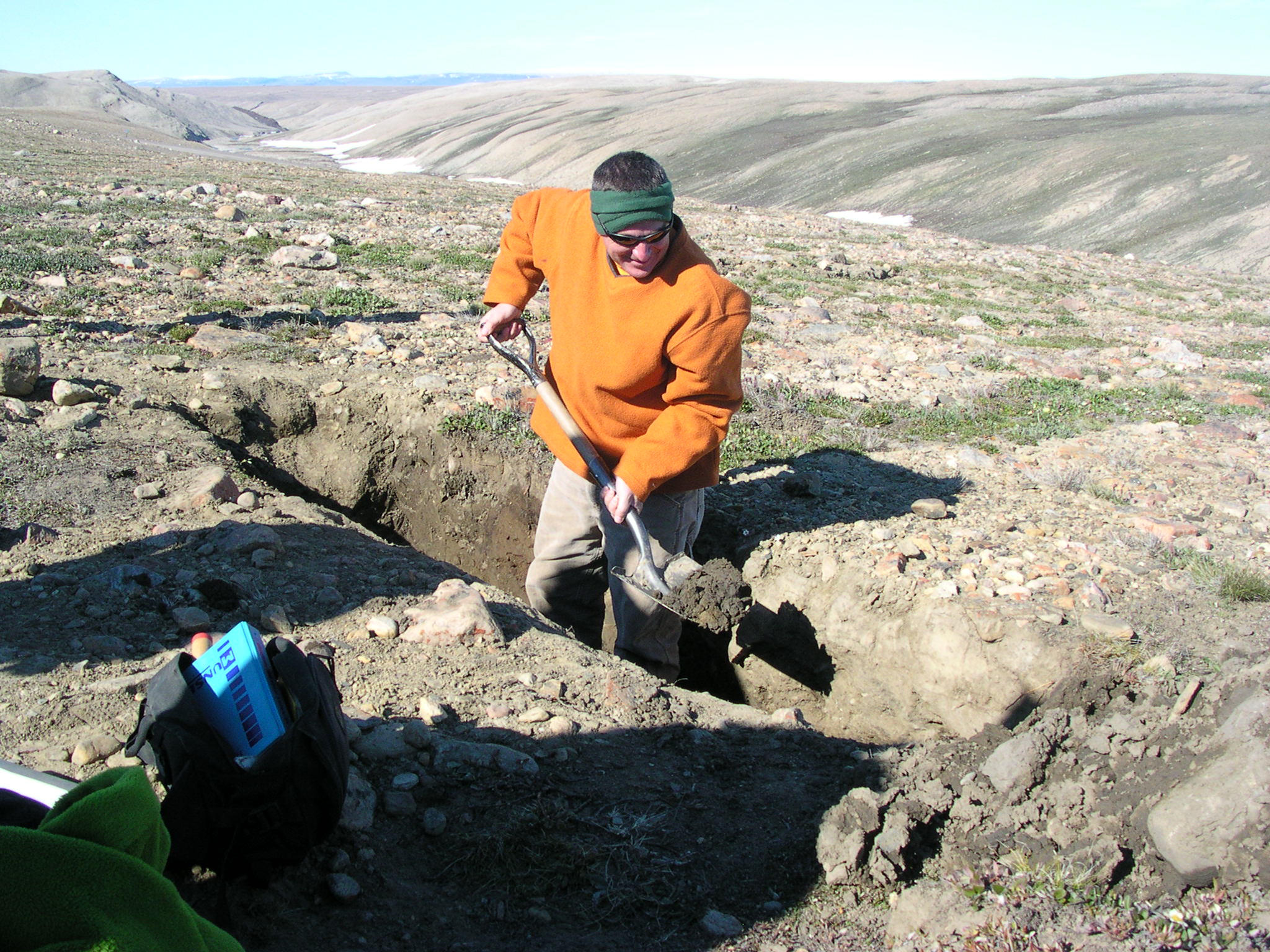 TREC teacher John Sode helps dig a soil pit during his 2005 expedition to Thule, Greenland.