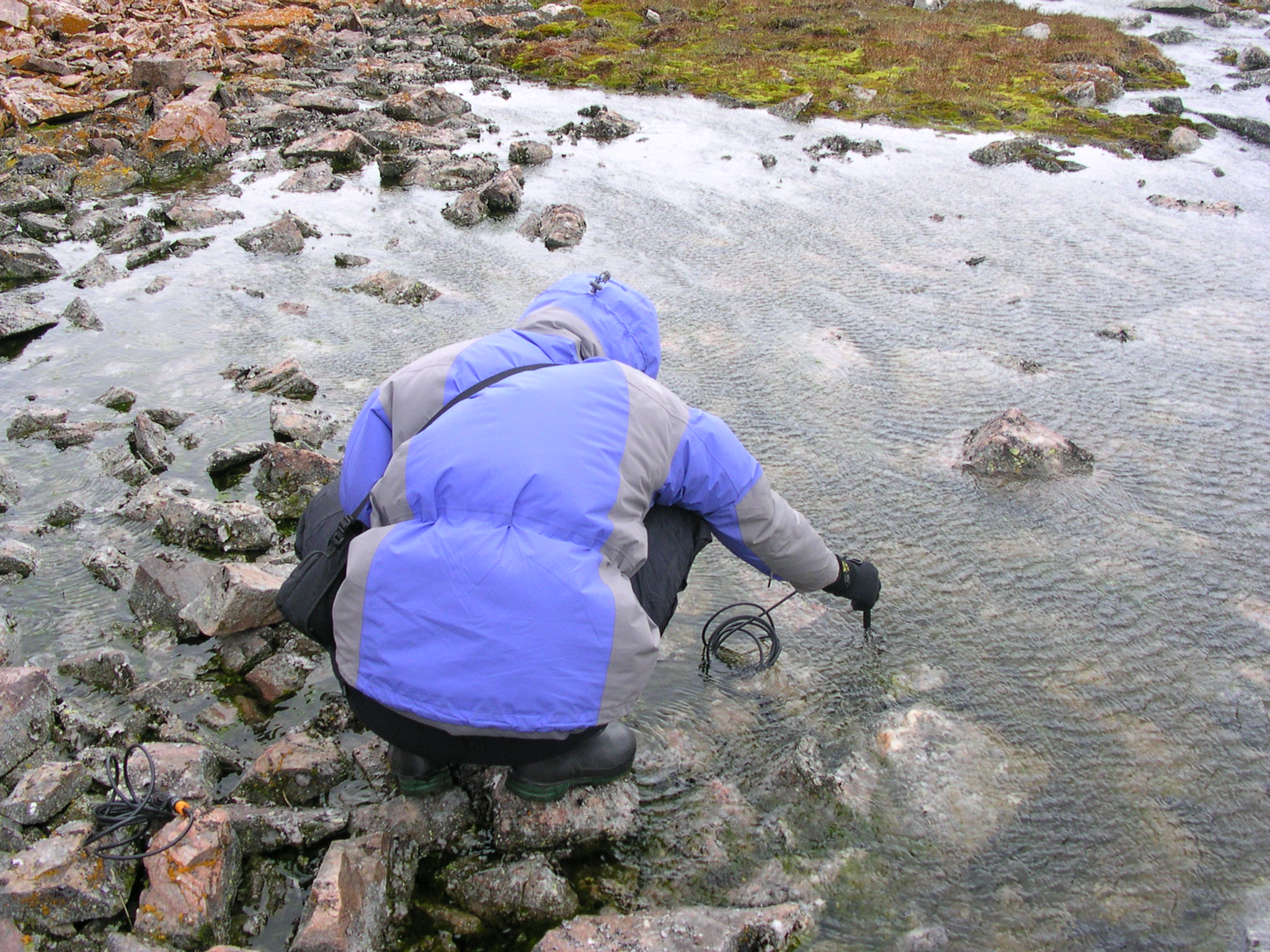 Collecting samples from a stream in the Greenvalley, Greenland.