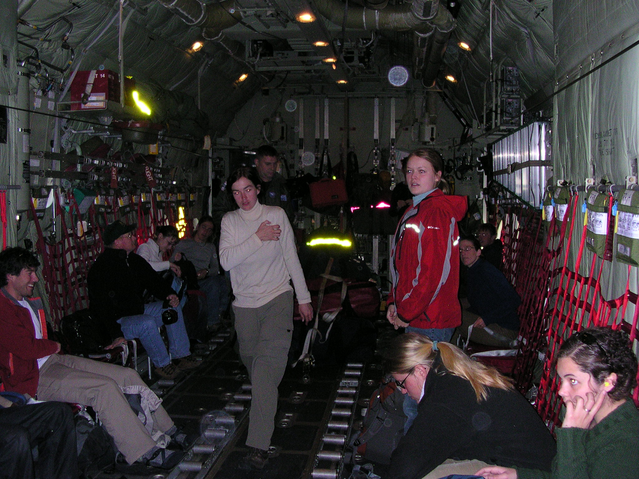 Inside the transport plane, a Herc C-130 on the way between Kanger and Thule, Greenland.