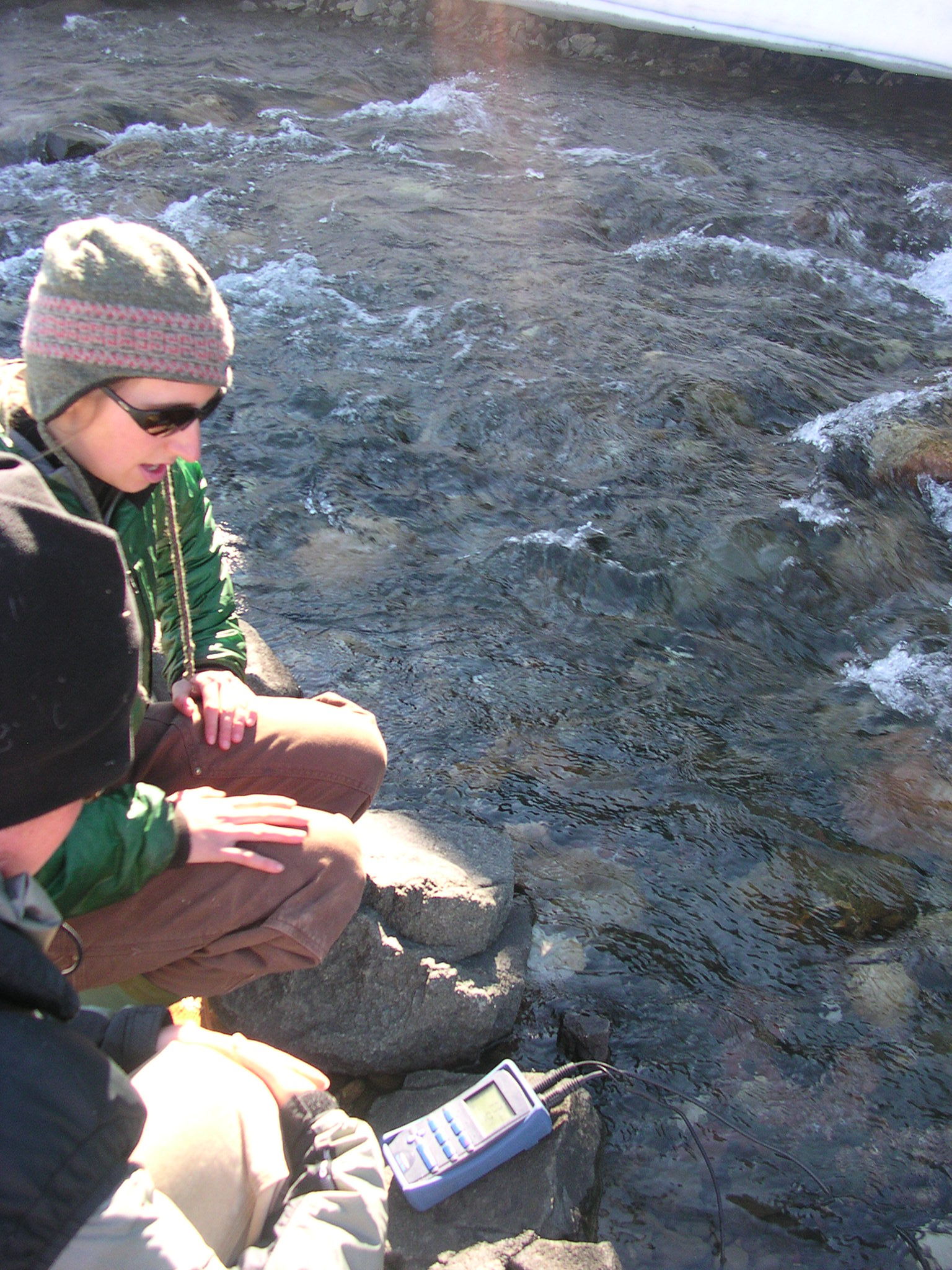 TREC teacher John Sode and other researcher team members take measurements on a river near Thule, Greenland.
