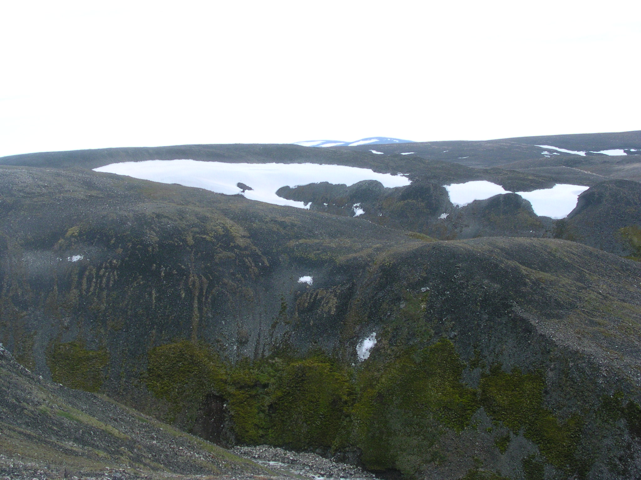 Snow and green hillsides seen by TREC teacher John Sode during his 2005 expedition to Thule, Greenland.