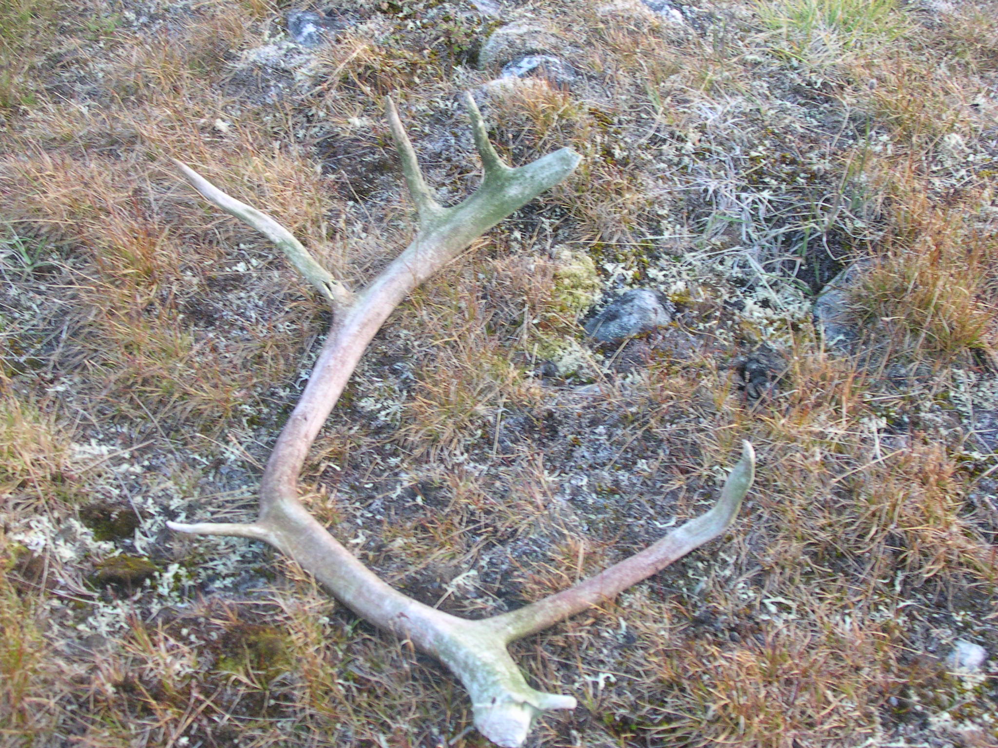 An antler found during TREC teacher John Sode's 2005 expedition to Thule, Greenland. Notice the green plant growth on it.