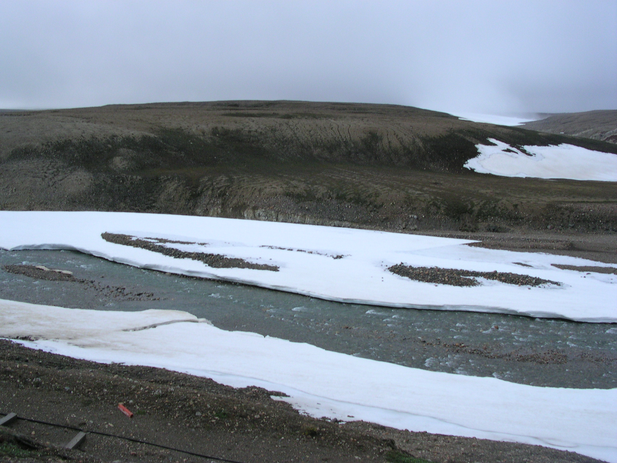 A river running thru snow as seen by TREC teacher John Sode during his 2005 expedition to Thule, Greenland.