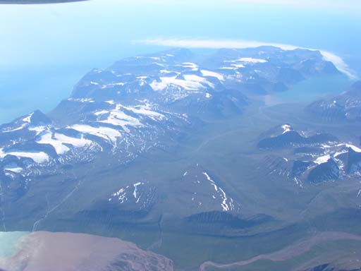 A scenic view seen in flight by TREC teacher John Sode during his 2005 expedition to Thule, Greenland.