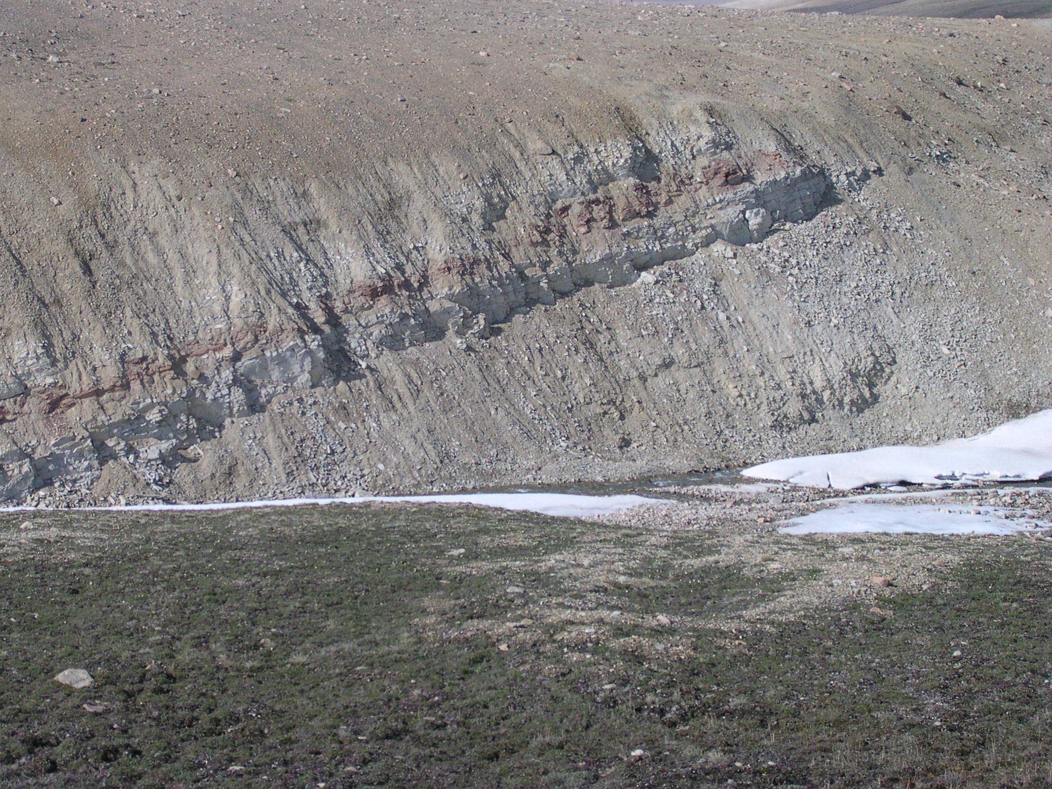 Different layers are visible on this hillside near Thule, Greenland.