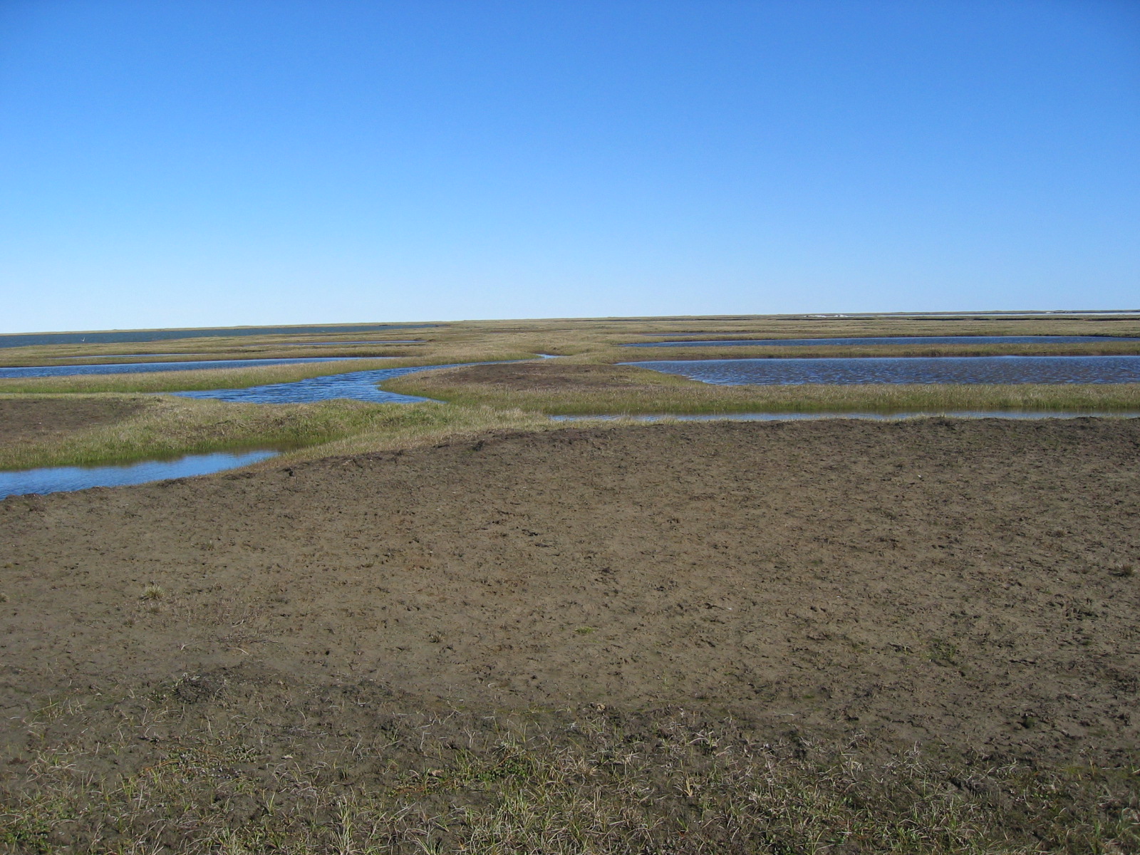 A grubbed or de-vegetated area on the Ikpikpuk Delta, caused by snow geese (*Chen caerulescens*).
