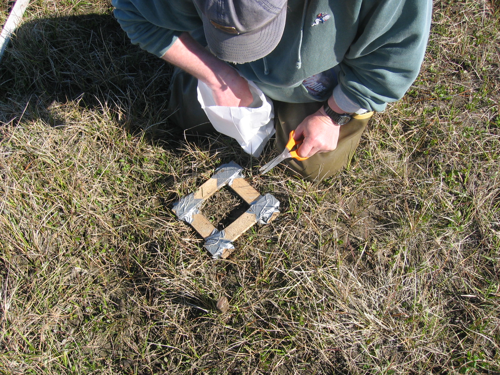 Biologist Brian Person uses a small (10cm square) quadrate for vegetation sampling as part of a snow goose(*Chen caerulescens*) study on the Ikpikpuk Delta.