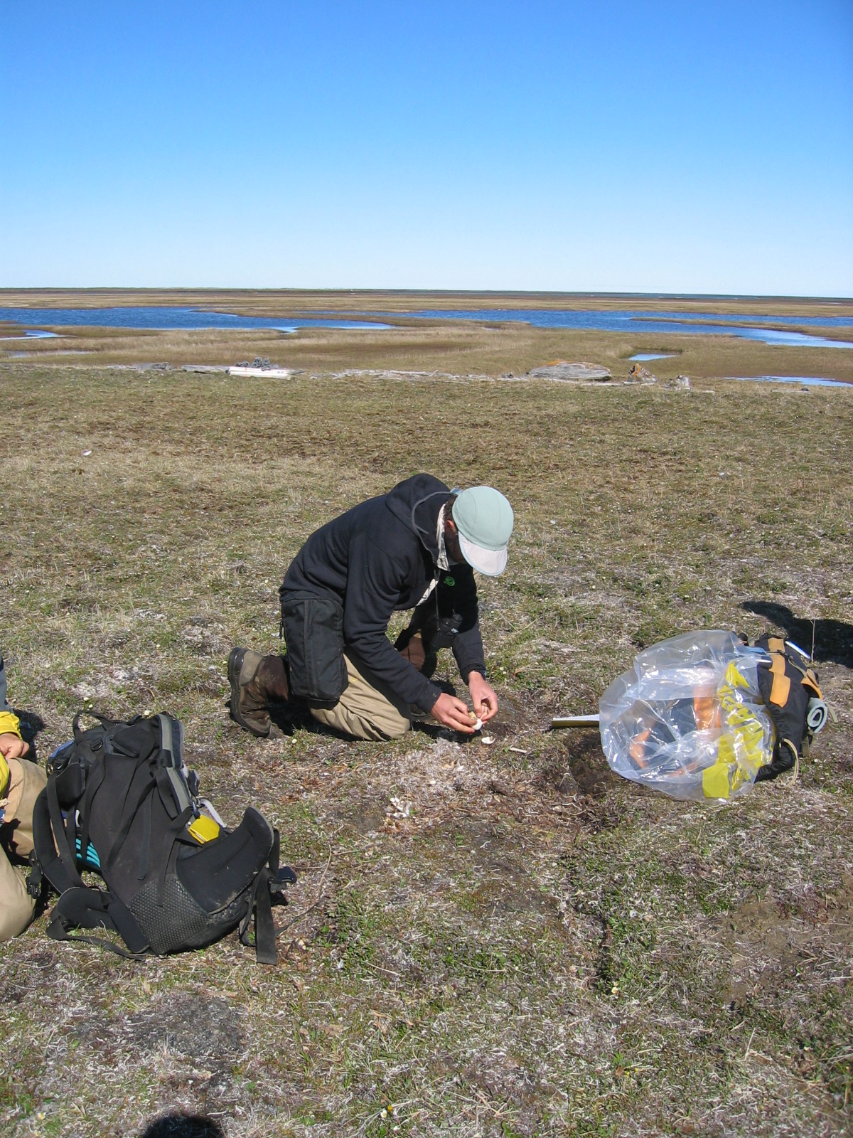ABR Inc. biologist John Shook looks at some egg shells on the Ikpikpuk Delta.