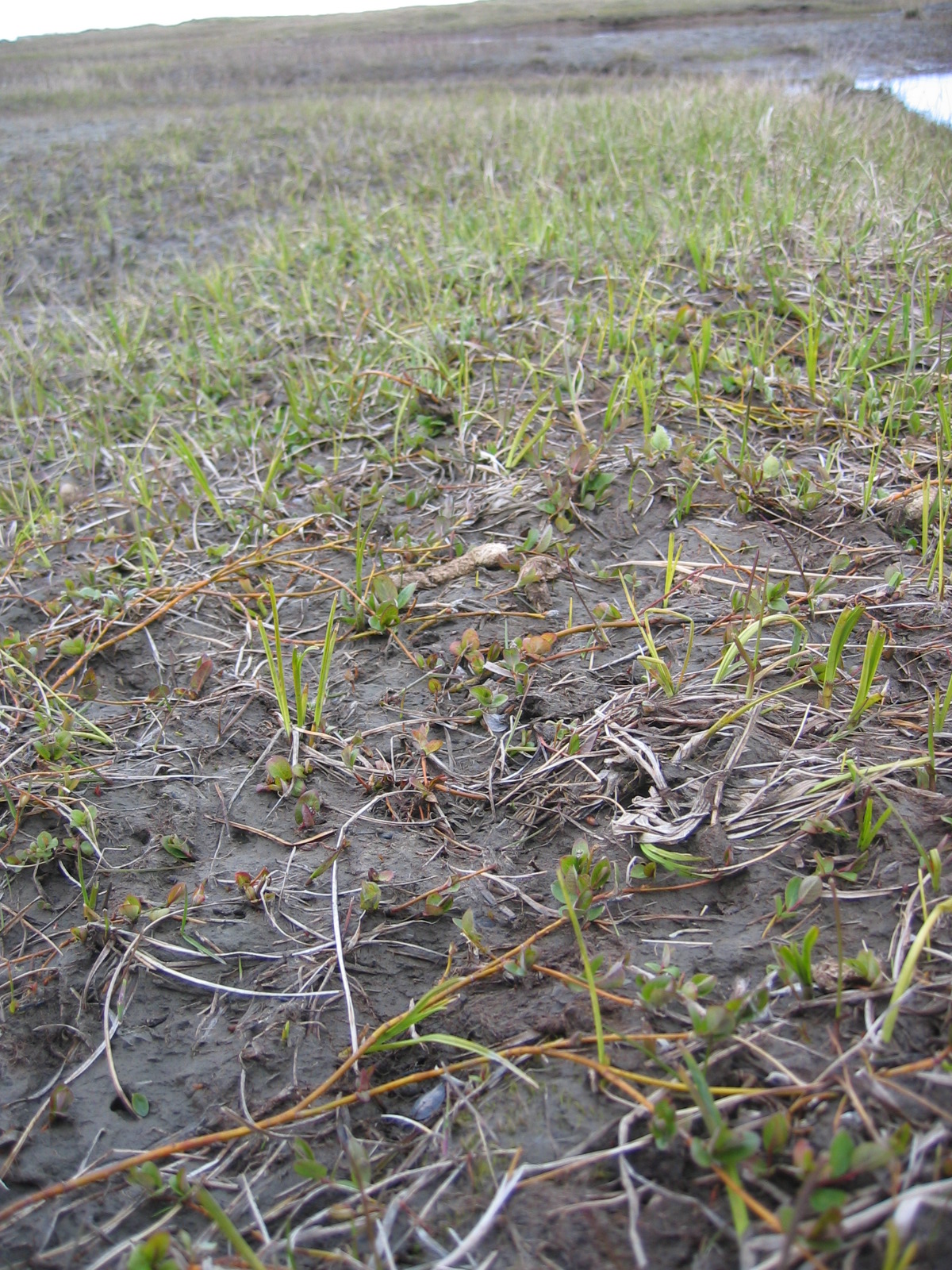 A grubbed or de-vegetated area on the Ikpikpuk Delta, caused by snow geese (*Chen caerulescens*).