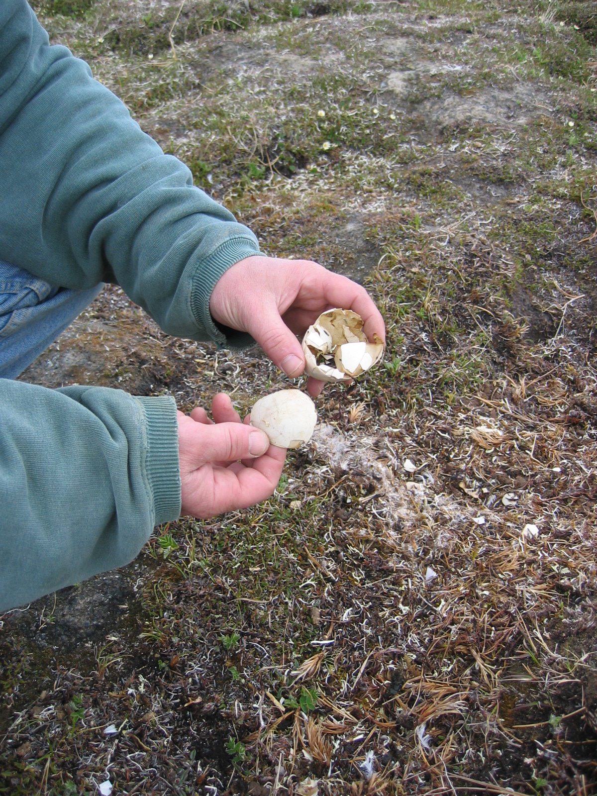 Egg shells in a snow goose (*Chen caerulescens*) nest located on the Ikpikpuk Delta, near Barrow, Alaska.