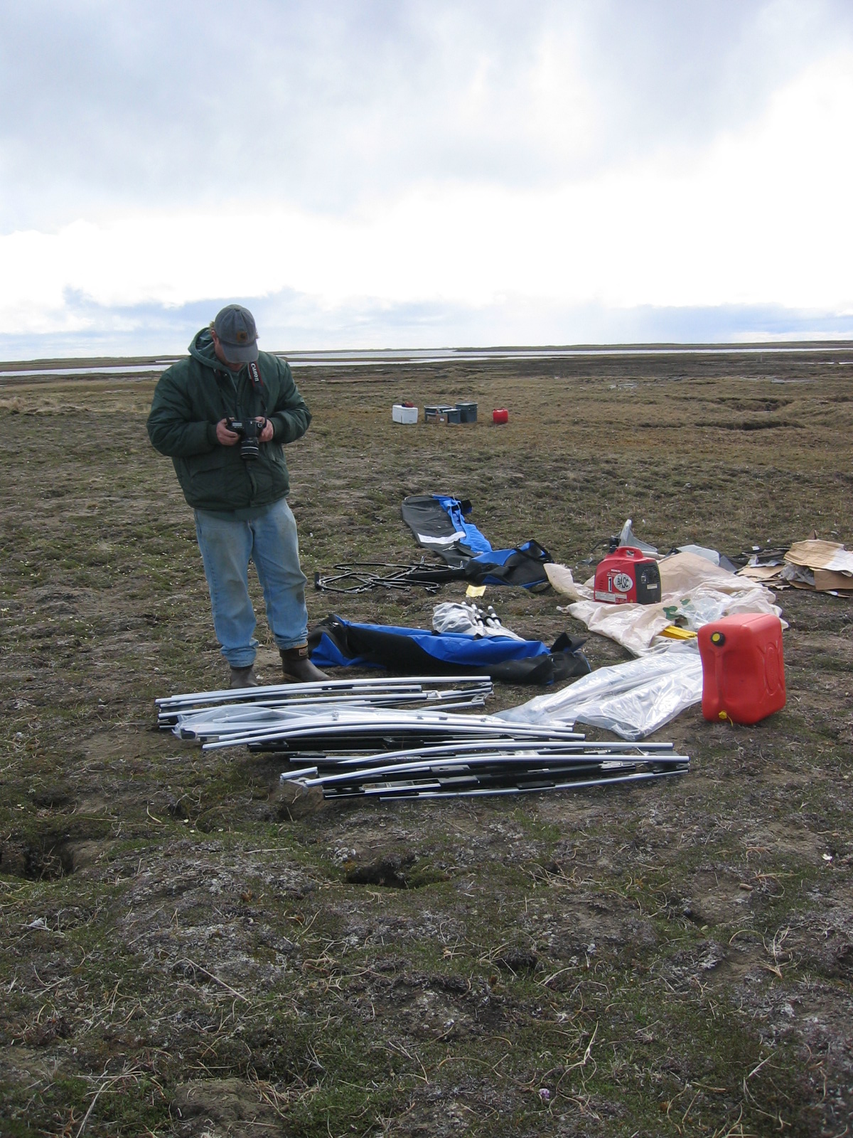The cache of supplies that biologist Brian Person and TREC teacher Leslie Pierce had left earlier in the year on the Ikpikpuk Delta, near Barrow, Alaska. A bear had gotten into the supplies.