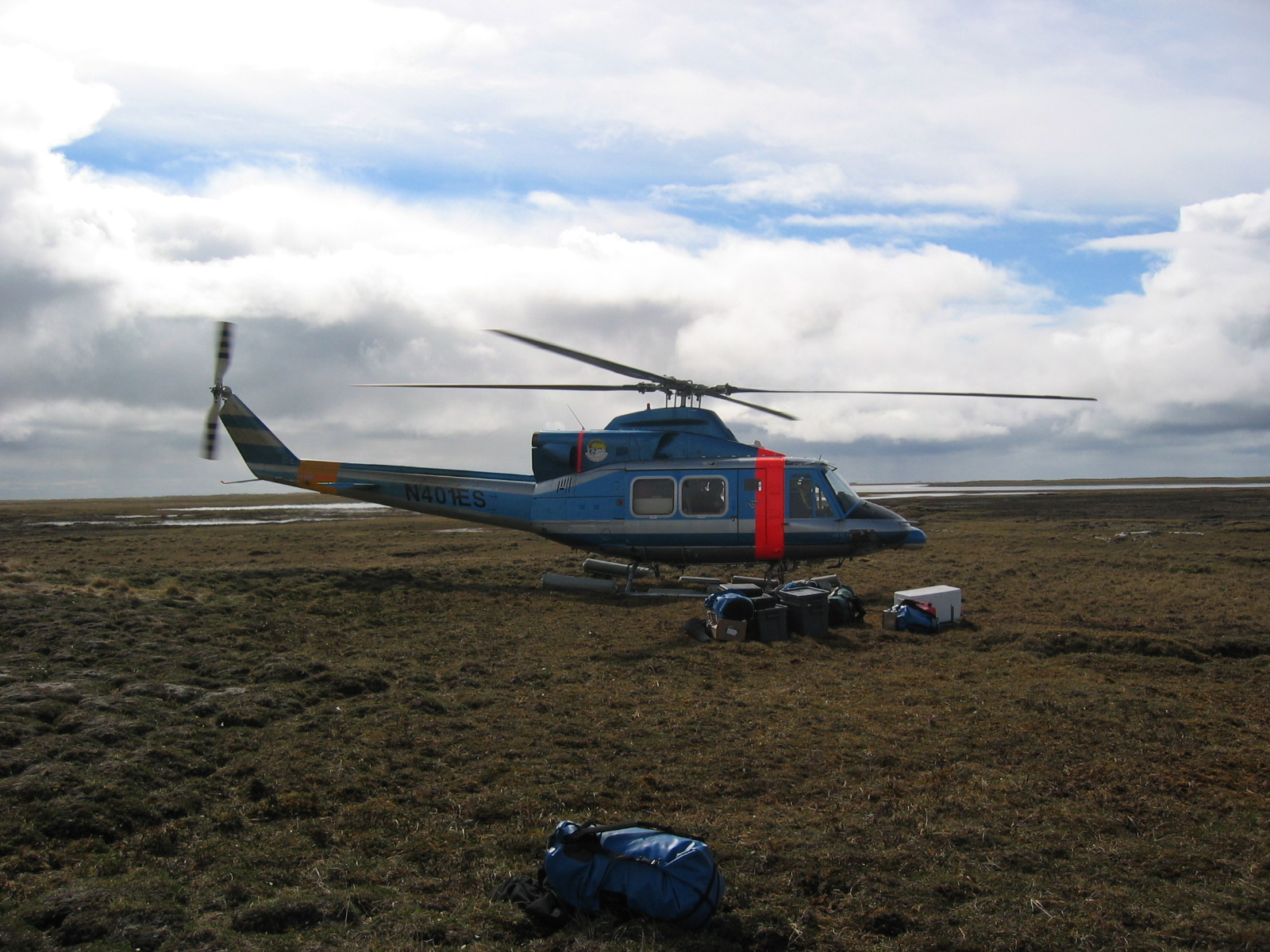 Unloading the helicopter at biologist Brian Person and TREC teacher Leslie Pierce's campsite on the Ikpikpuk Delta, near Barrow, Alaska.
