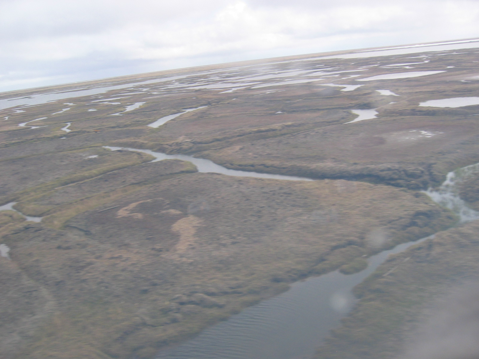 An aerial view of the tundra as seen from a helicopter heading to the Ikpikpuk Delta.