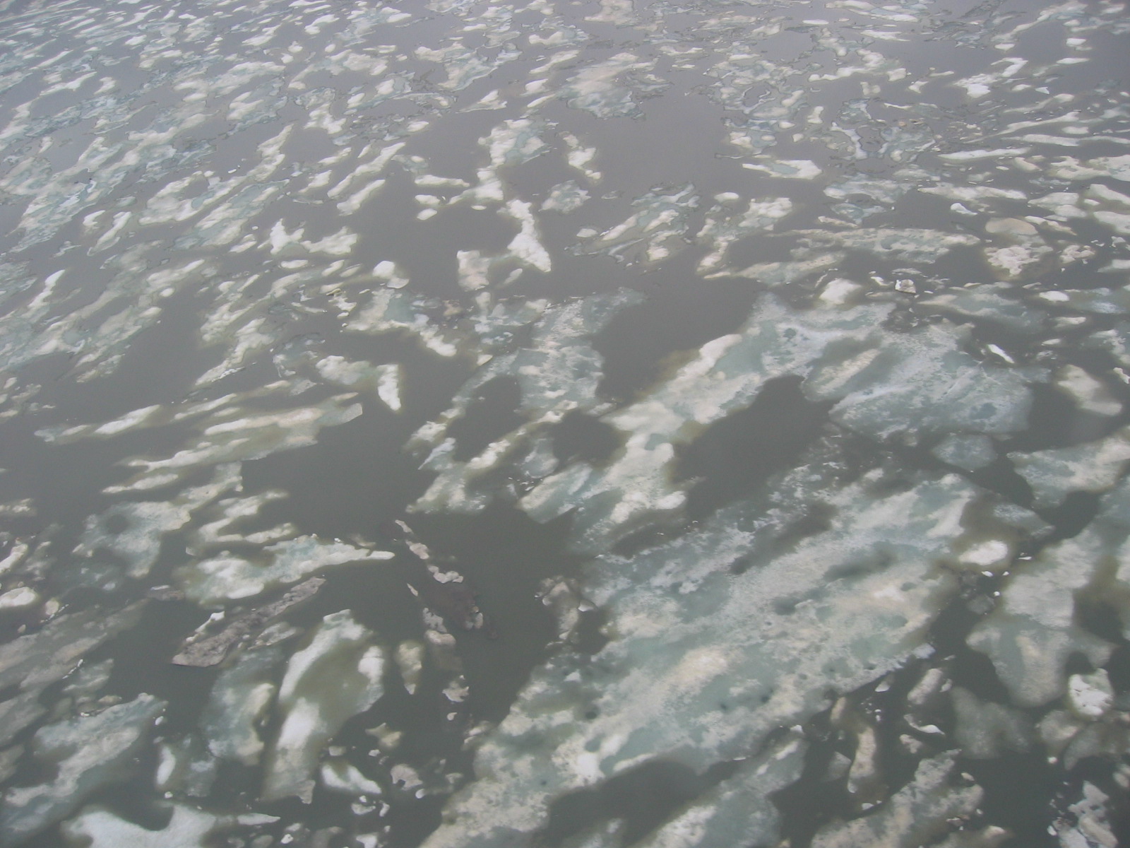 An aerial view of the lake ice as seen from a helicopter heading to the Ikpikpuk Delta.