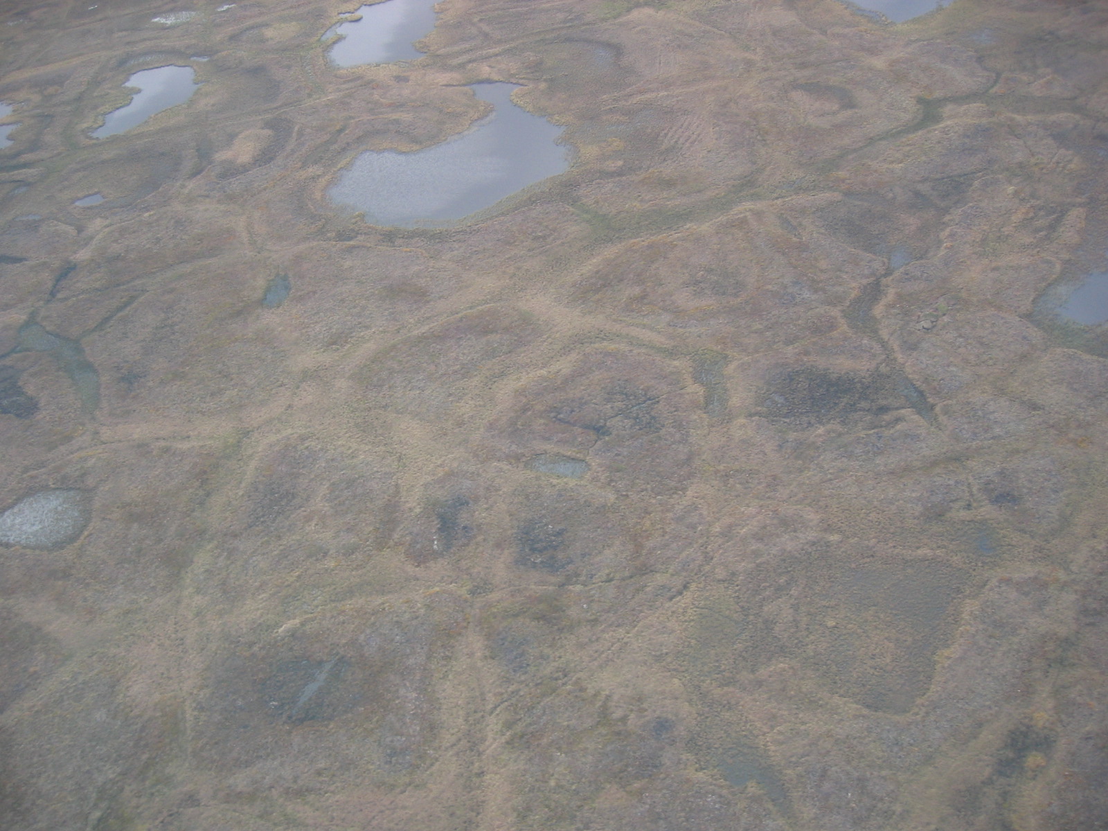 An aerial view of the tundra around Barrow, Alaska as seen from a helicopter heading to the Ikpikpuk Delta.