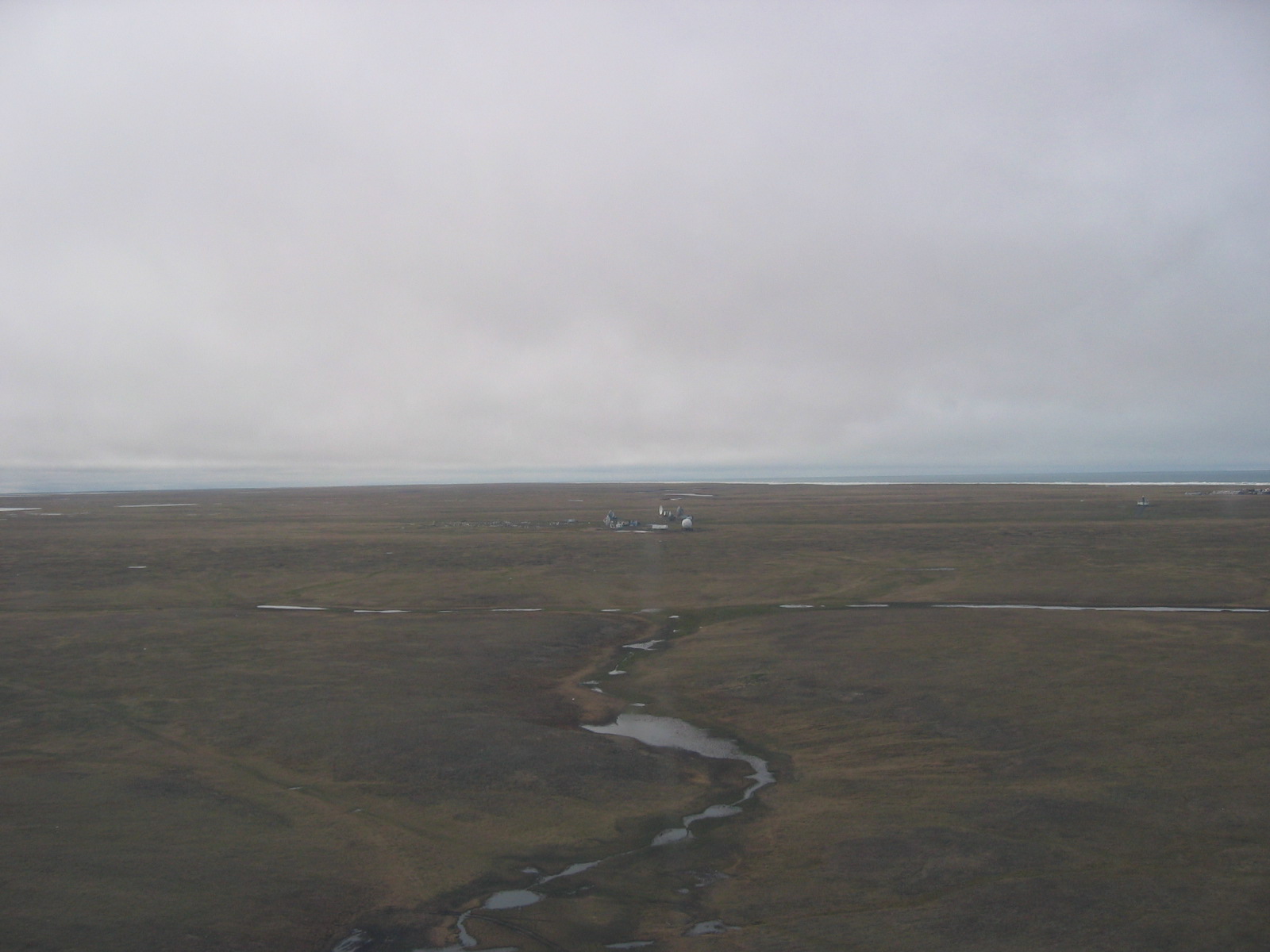 An aerial view of the tundra around Barrow, Alaska as seen from a helicopter heading to the Ikpikpuk Delta.