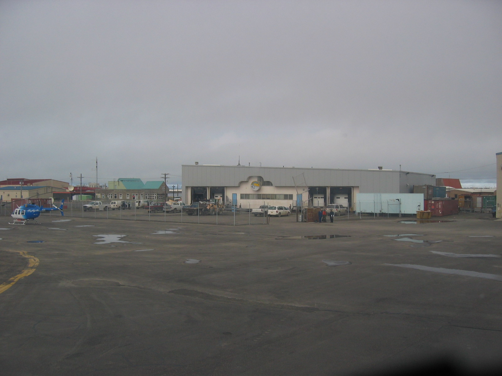 The view leaving Barrow, Alaska by Helicopter, note the search and rescue hanger.