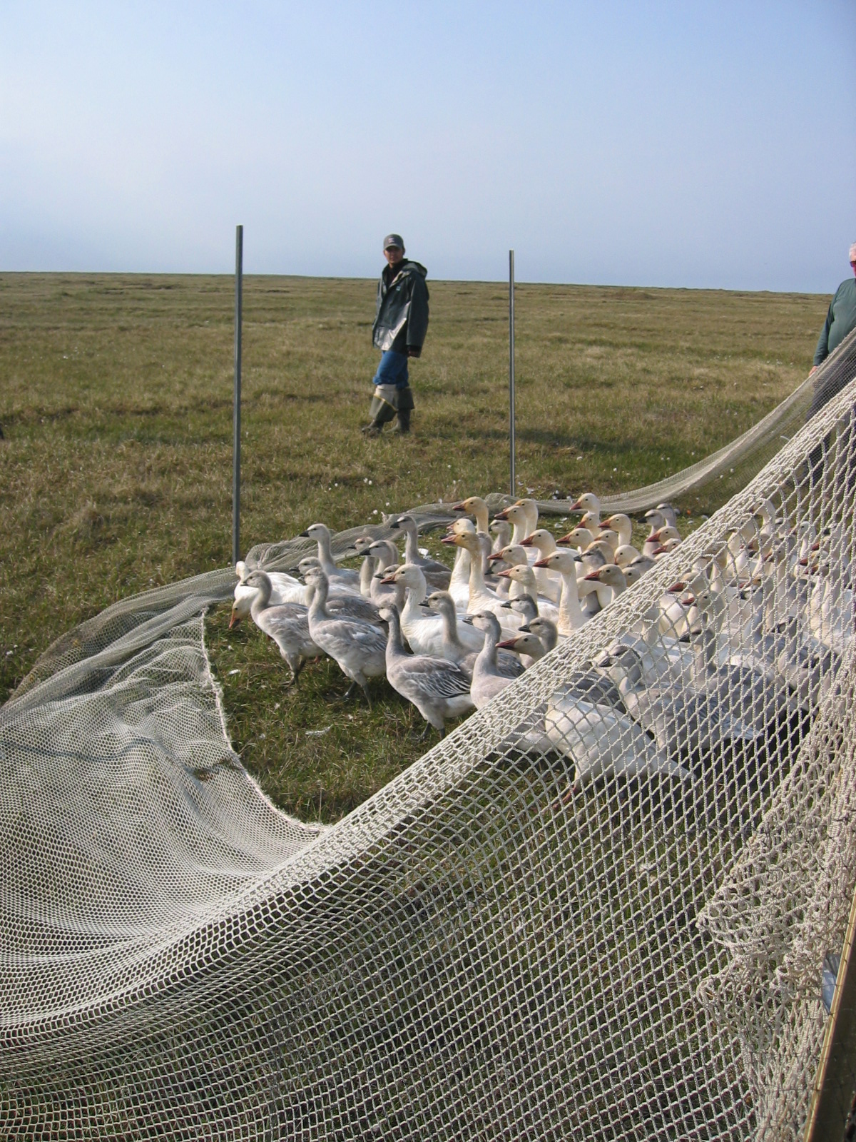 The snow geese (*Chen caerulescens*) are released after banding, near Barrow, Alaska.