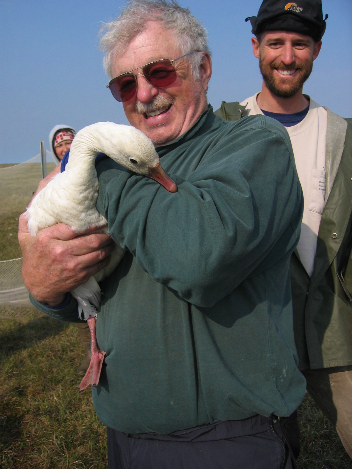 Pilot Sandy Hamilton holds a snow goose (*Chen caerulescens*) during banding near Barrow, Alaska.