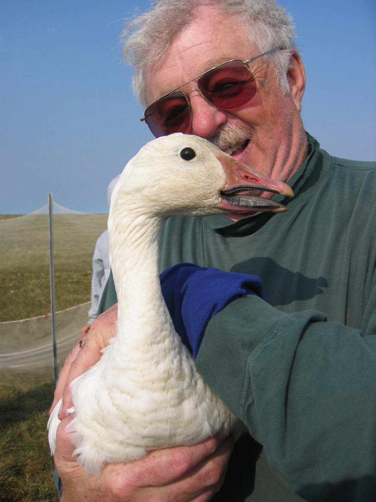 Pilot Sandy Hamilton holds a snow goose (*Chen caerulescens*) during banding near Barrow, Alaska.