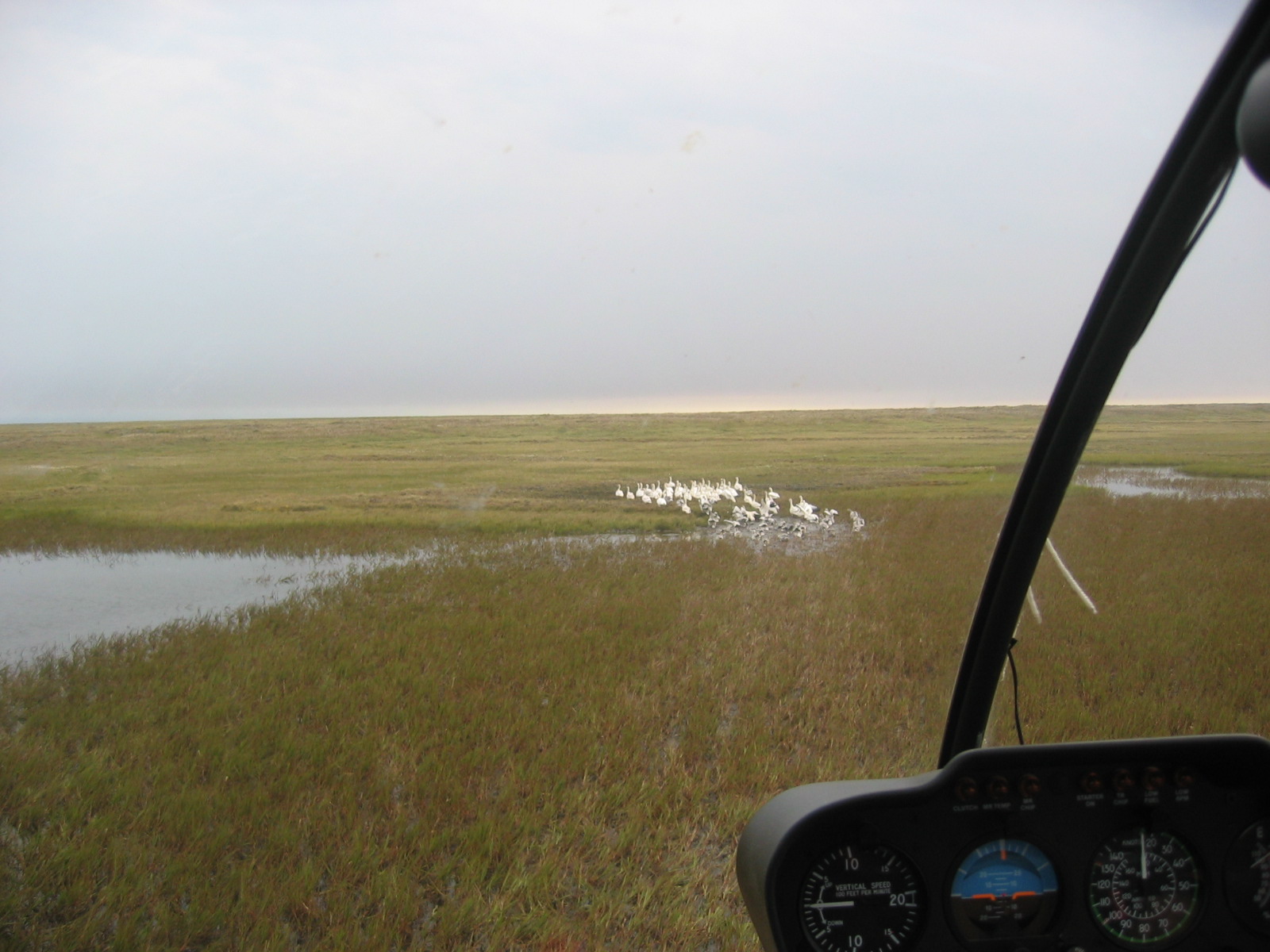 A view from the helicopter used to herd snow geese (*Chen caerulescens*) into holding pens to be banded near Barrow, Alaska.