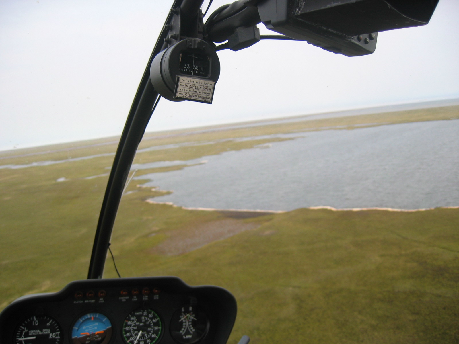 A view from the helicopter used to herd snow geese (*Chen caerulescens*) into holding pens to be banded near Barrow, Alaska.
