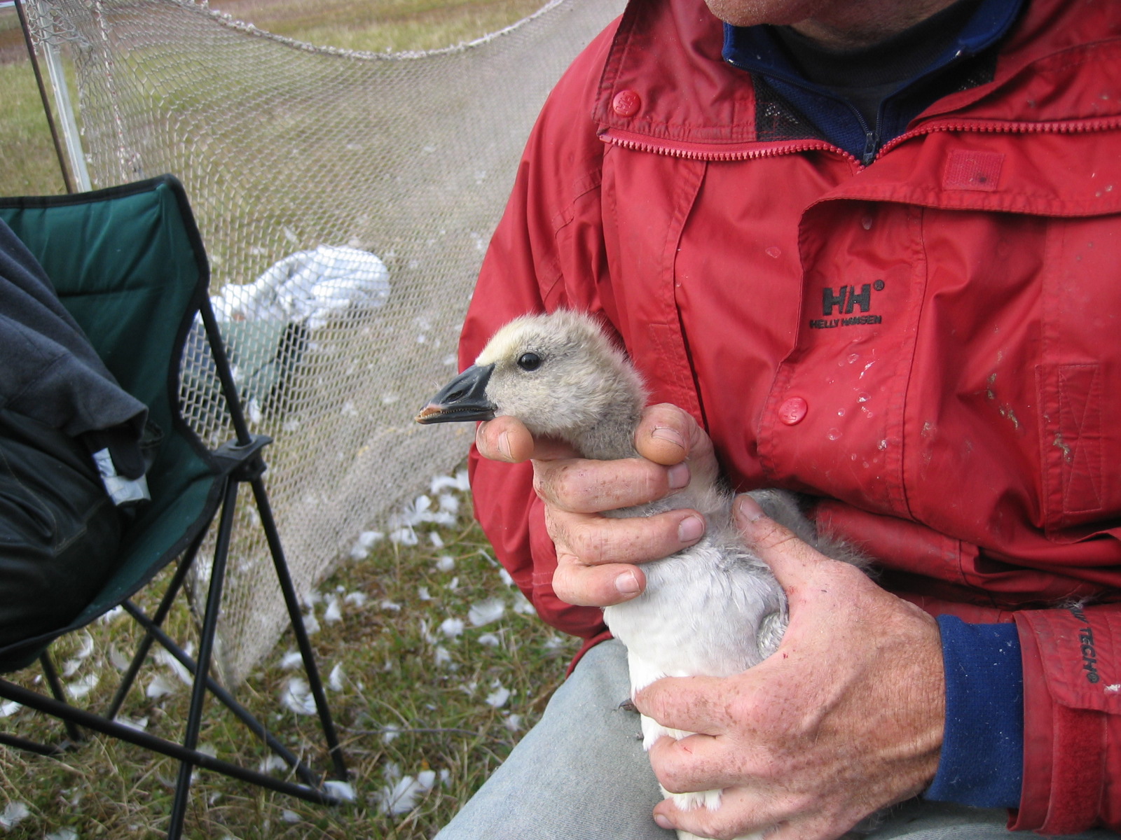 Bob Richie of ABR, Inc. holds a snow goose (*Chen caerulescens*) to be banded on the Ikpikpuk Delta, near Barrow, Alaska.