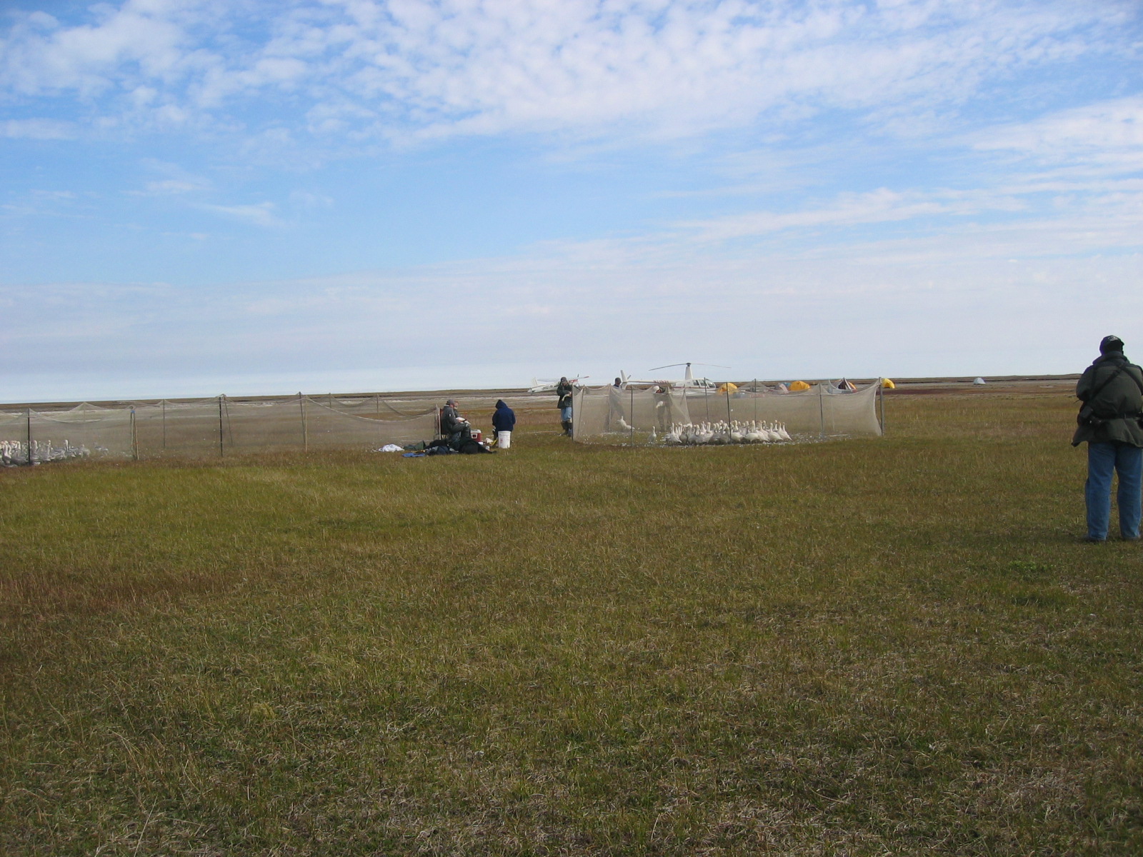A view of the various pens and banding stations set up to band snow geese (*Chen caerulescens*), Ikpikpuk delta near Barrow, AK.