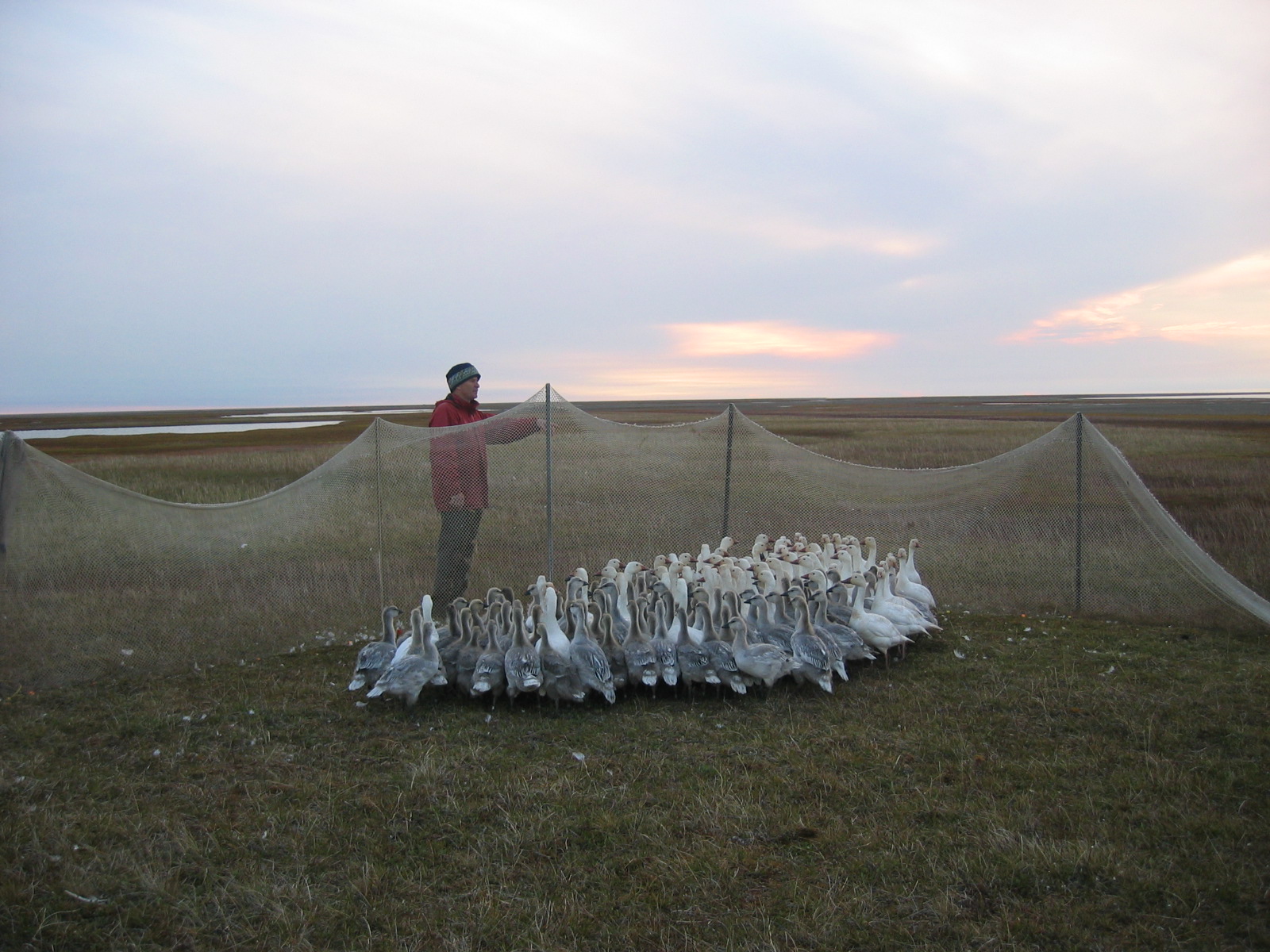 Snow geese (*Chen caerulescens*) are released after being banded, Ikpikpuk delta, near Barrow, AK.