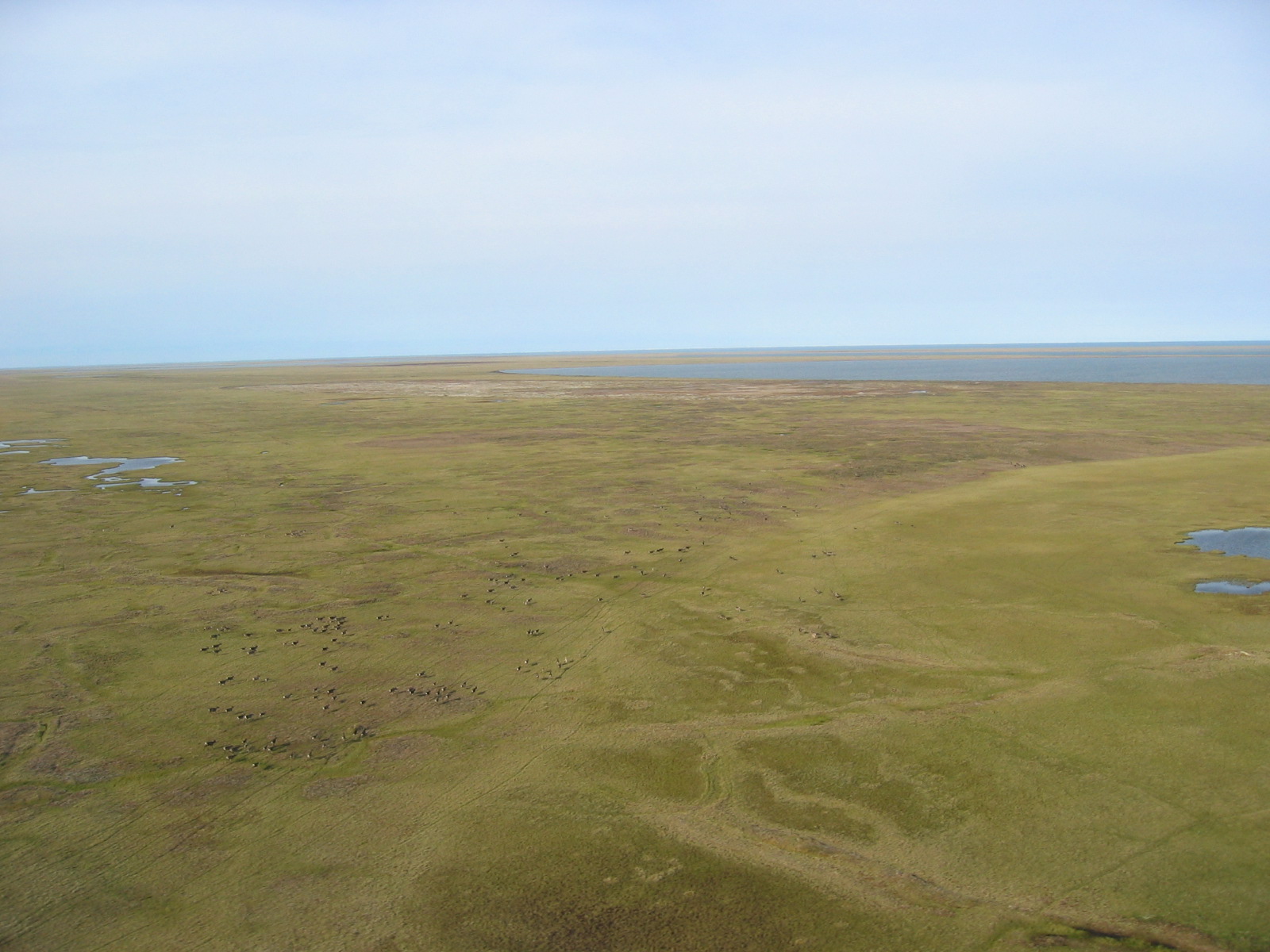 Caribou on the tundra of the Ikpikpuk delta near Barrow, AK.