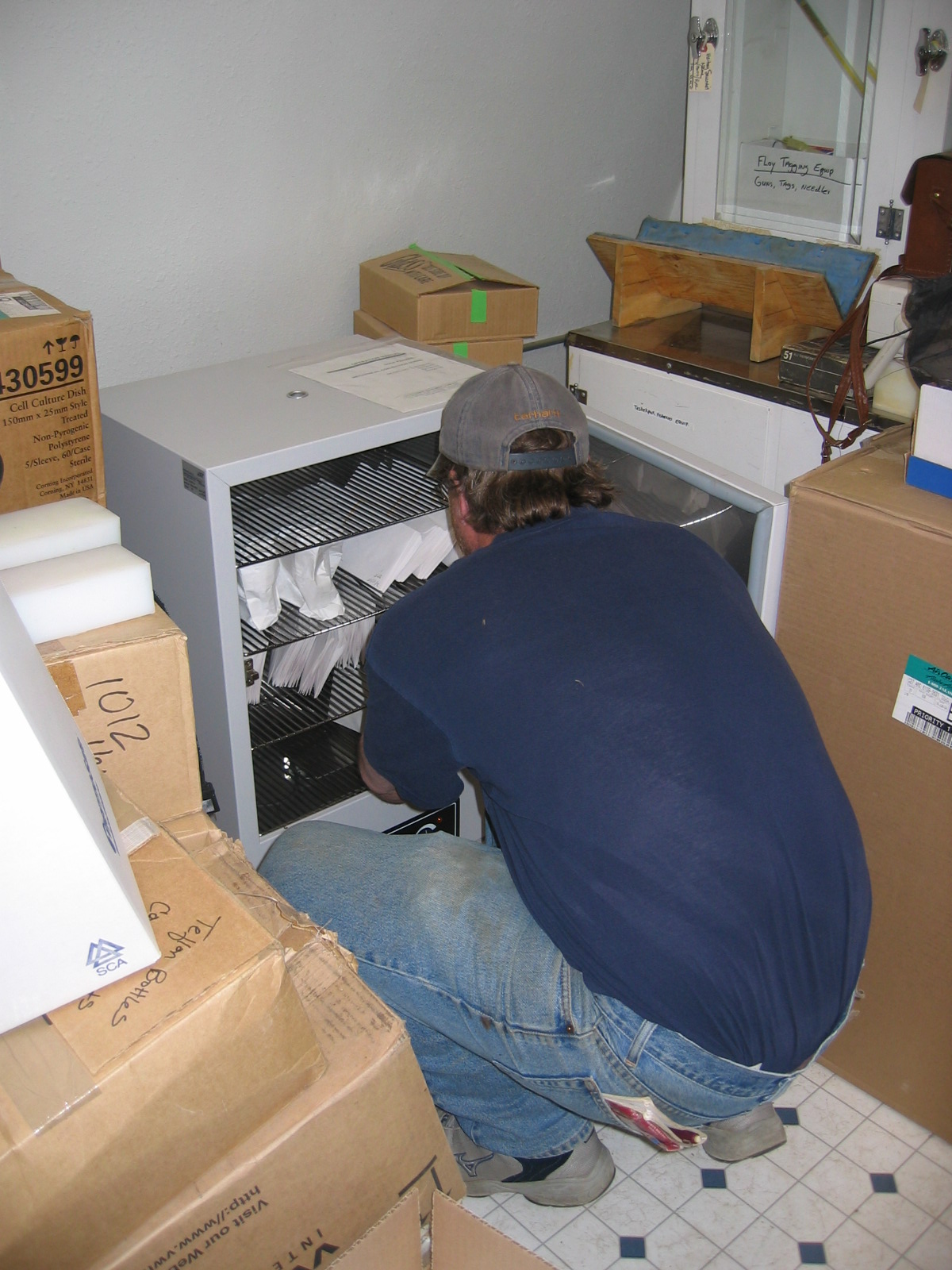 Biologist Brian Person puts vegetation samples collected from the Ikpikpuk Delta in a drying oven where they will dry at 50 C for about 72 hours.