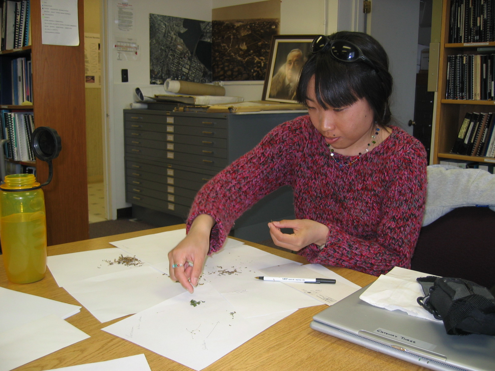 Chie Sakakibara, a University of Oklahoma PhD student helps sort vegetation collected from the Ikpikpuk Delta.