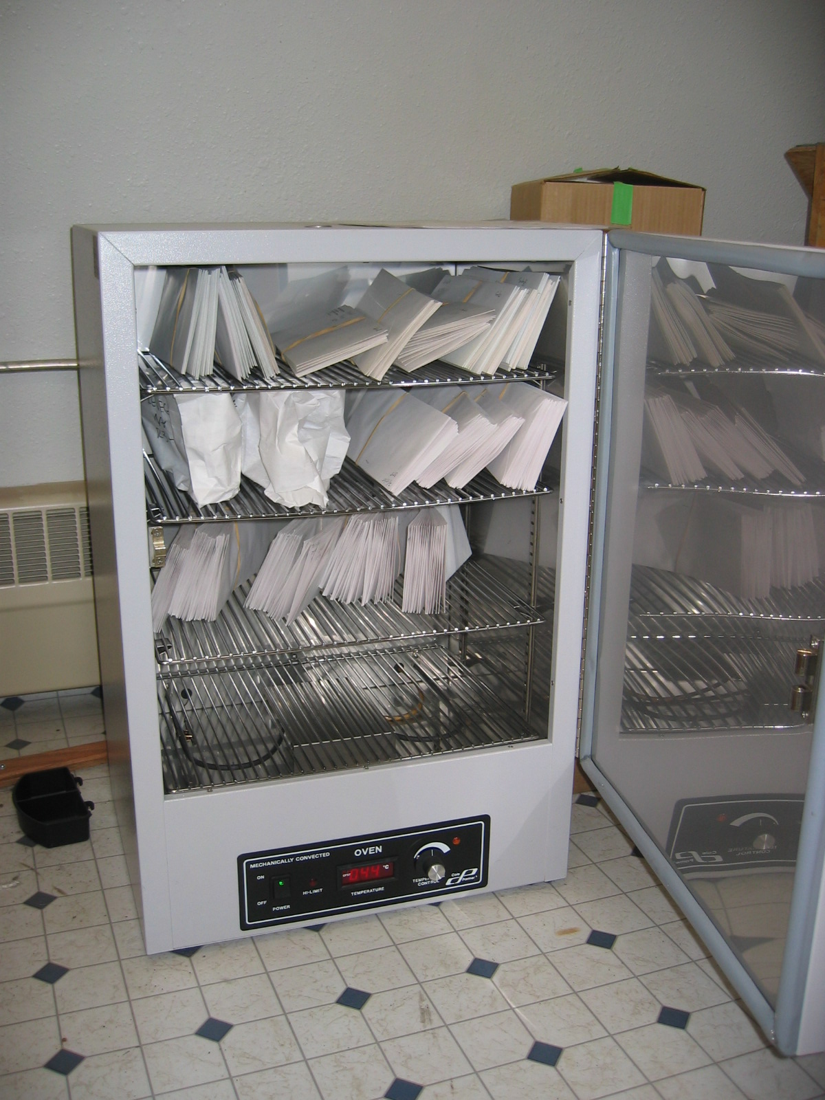 Biologist Brian Person puts vegetation samples collected from the Ikpikpuk Delta in a drying oven where they will dry at 50 C for about 72 hours.