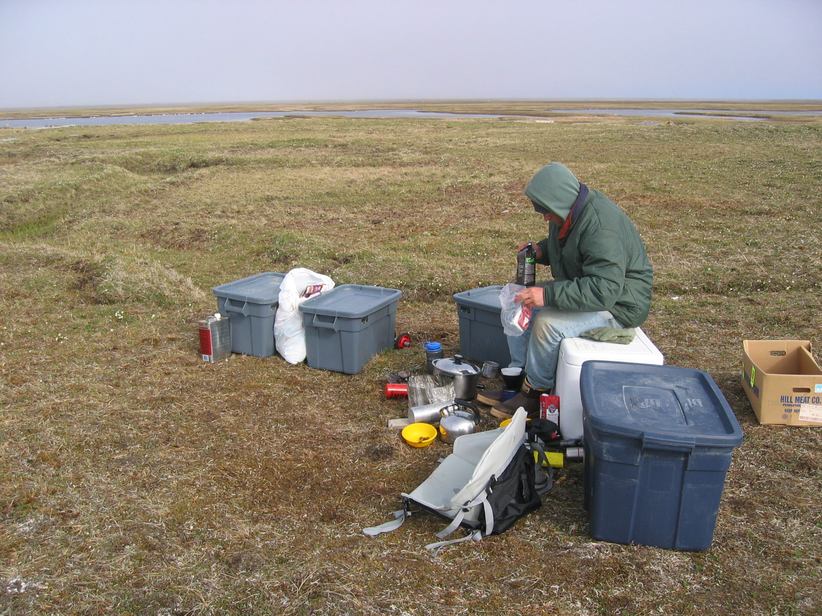Biologist Brian Person makes coffee at the field camp located on the Ikpikpuk Delta.